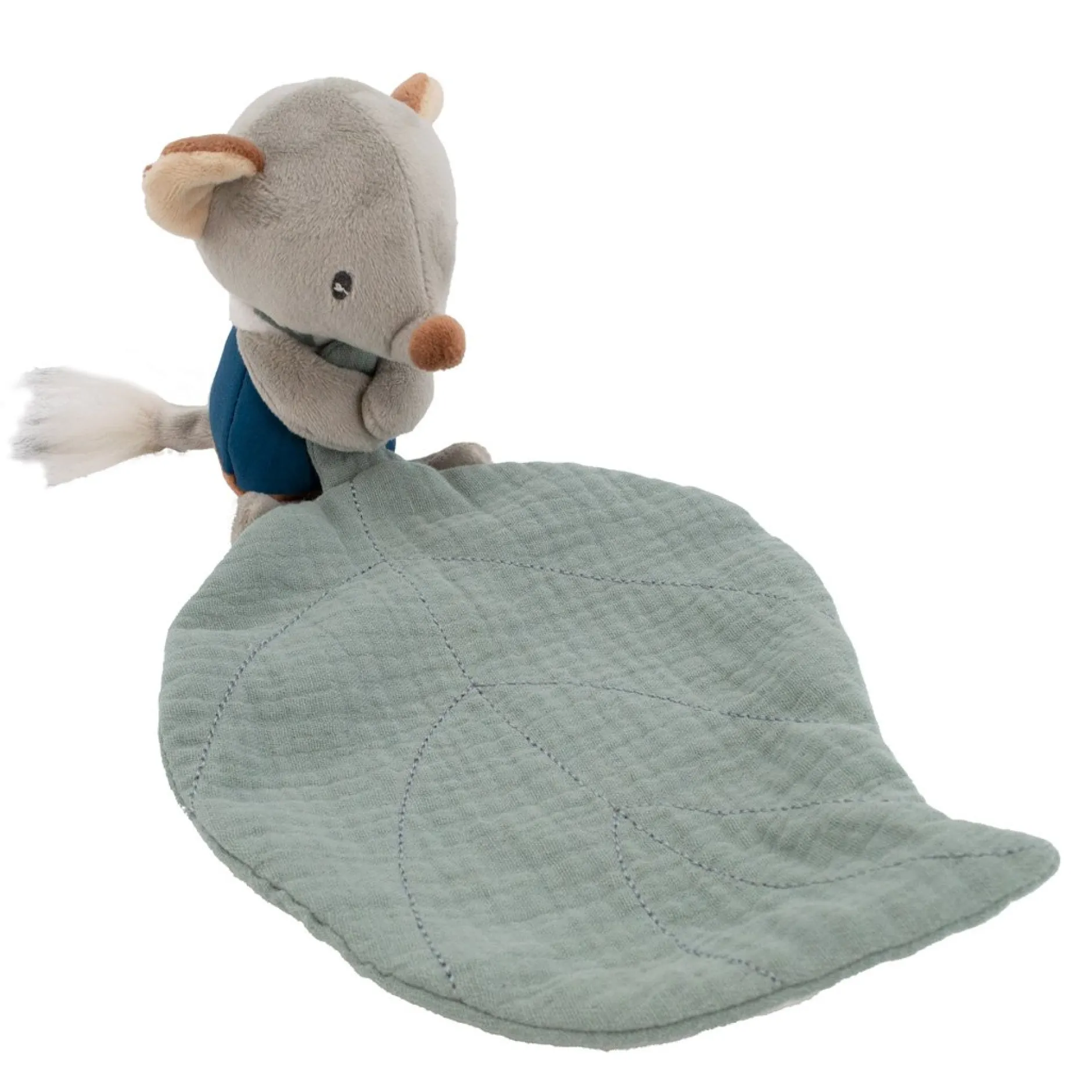 Avec sa grande feuille en lange et jersey de coton, le doudou Alix est idéal pour être papouiller par les bébés.