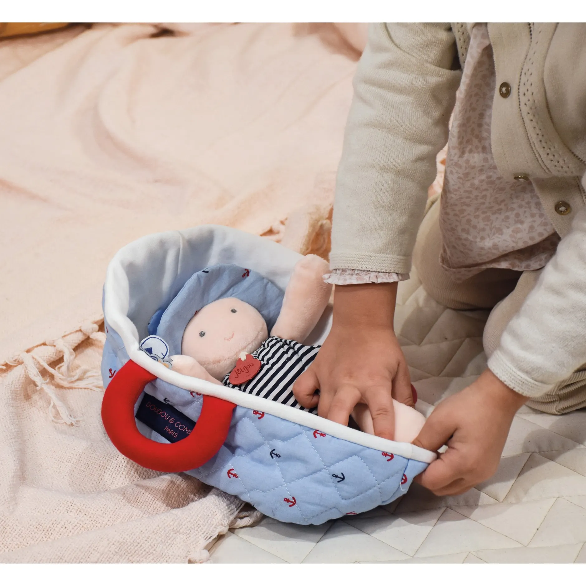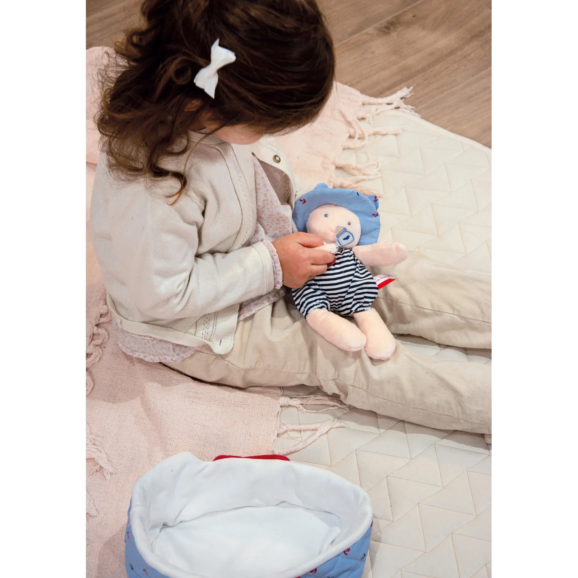 Avec son joli couffin matelassé et son petit biberon c’est un formidable compagnon de jeux pour tous les petits. Jouer avec un poupon aide l’enfant à réguler ses émotions quotidiennes, développer sa motricité et son imagination tout en s’amusant. Un cadeau idéal dès la naissance. Poupon et couffin lavable à 30°, séchage mécanique à basse température.