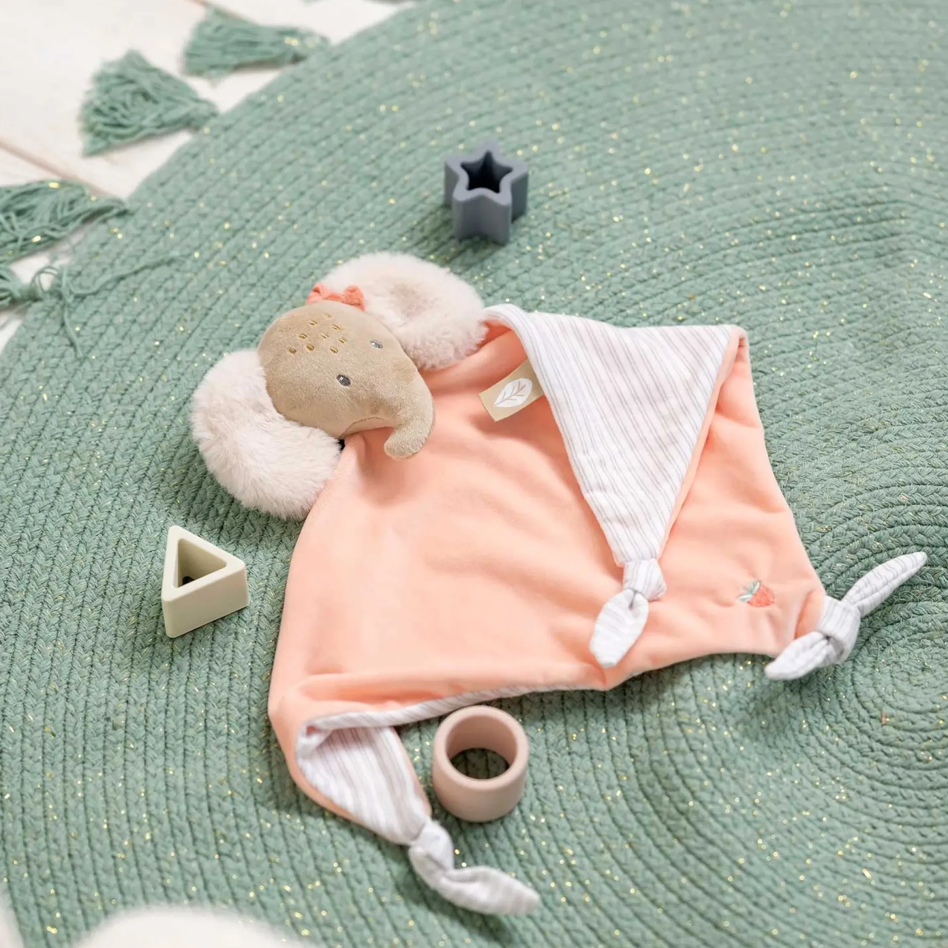 De plus, une attache pratique pour la sucette est prévue. Astuce : procurez-vous un doudou supplémentaire à la maison. Ainsi, votre enfant n’en manquera jamais lorsque l’un d’eux devra passer à la machine à laver.