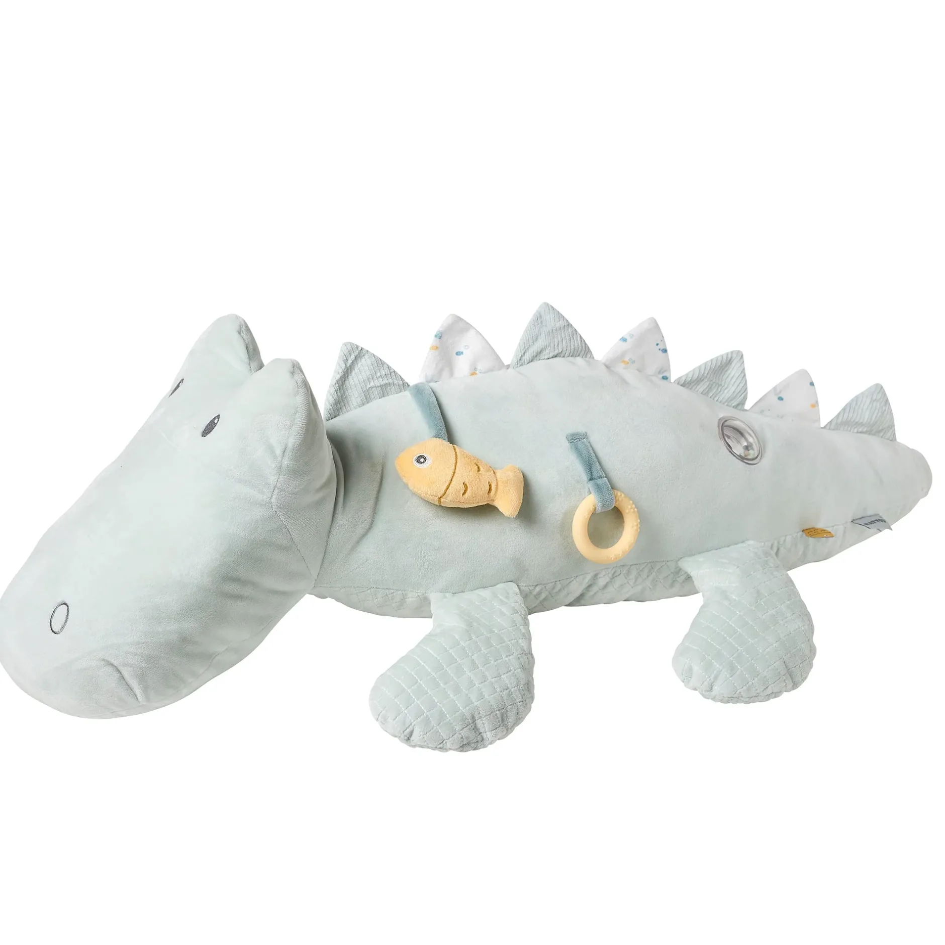 Le doudou d’activités rendra ton bébé heureux grâce à ses activités amusantes tel que: les étiquettes et les petits animaux que ton bébé pourra saisir, un miroir et un anneau de dentition en silicone avec lesquels il pourra s’amuser.