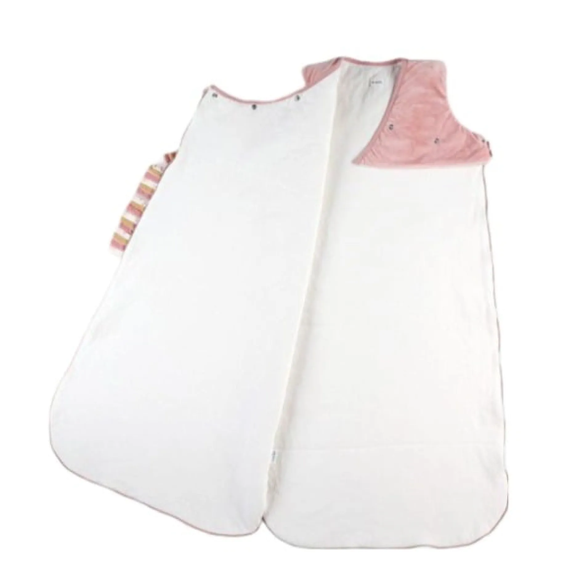 Pratique, elle dispose également de pressions aux bras pour éviter que bébé ne glisse à l’intérieur. L’absence de manches permet une ventilation naturelle et la régulation de la température du corps. Lorsque la température de la pièce le nécessite, il est possible de favoriser une aération plus importante en ouvrant le bas.