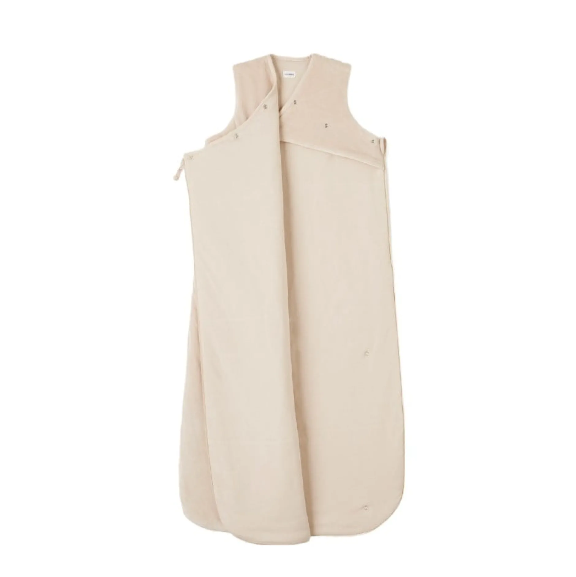Boutons pressions aux emmanchures pour s’adapter à bébé et pour qu’il ne glisse pas à l’intérieur, et ouverture zip pour faciliter le change.