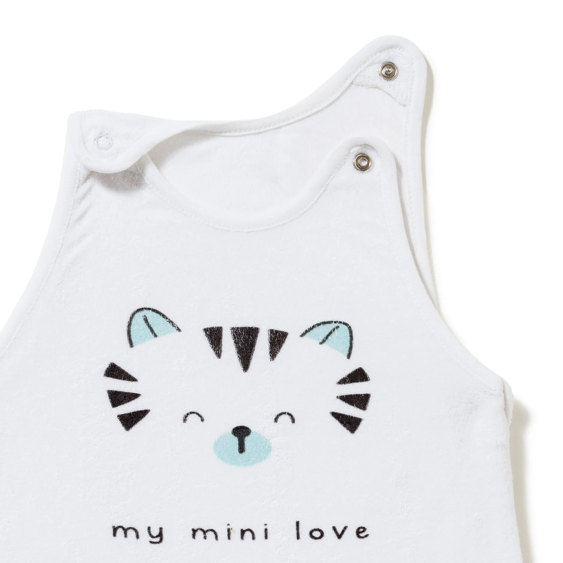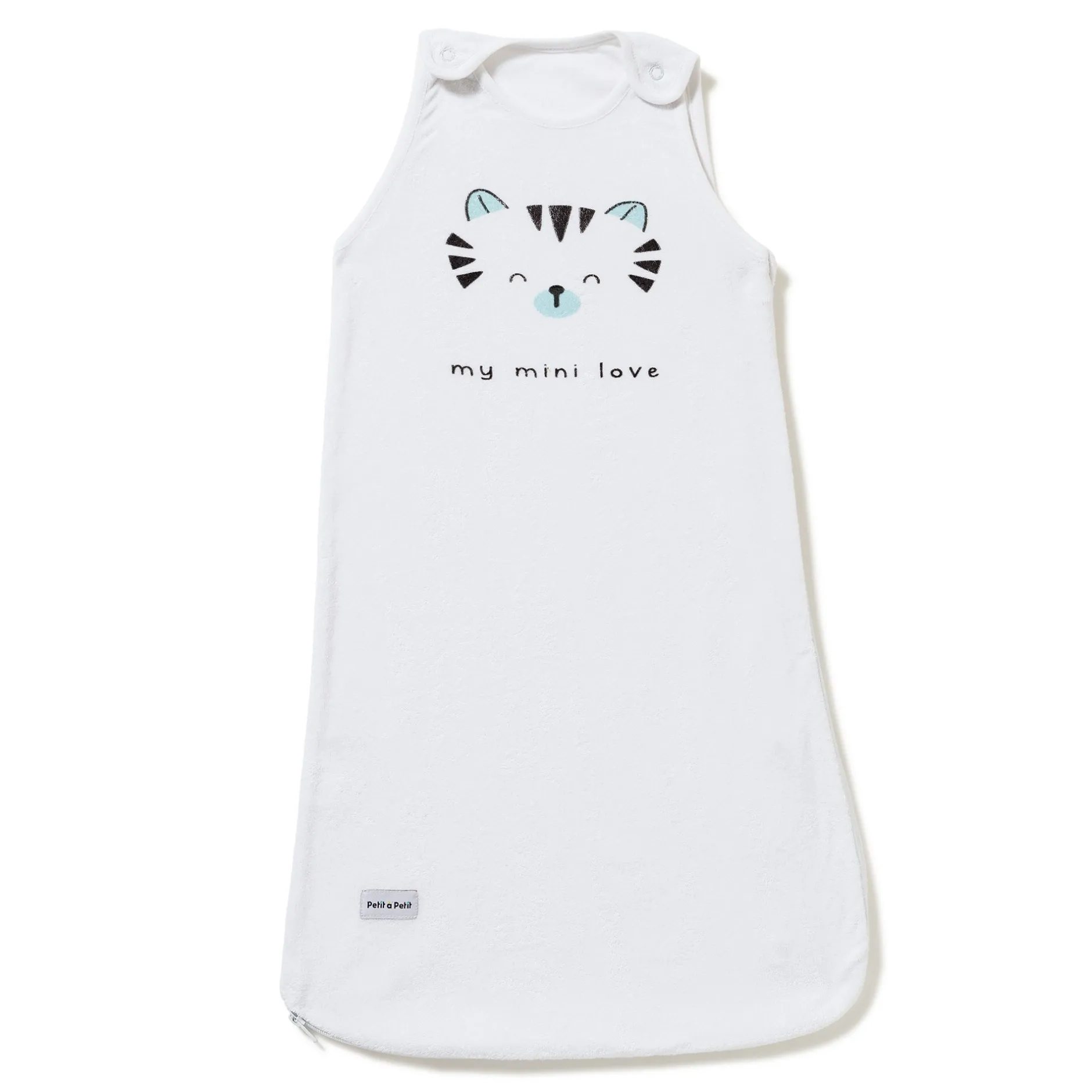 Gigoteuse en éponge de coloris blanc avec une jolie lapinette, un panda très mignon dans sa forêt de bambou, ou un beau petit tigre imprimée devant.
