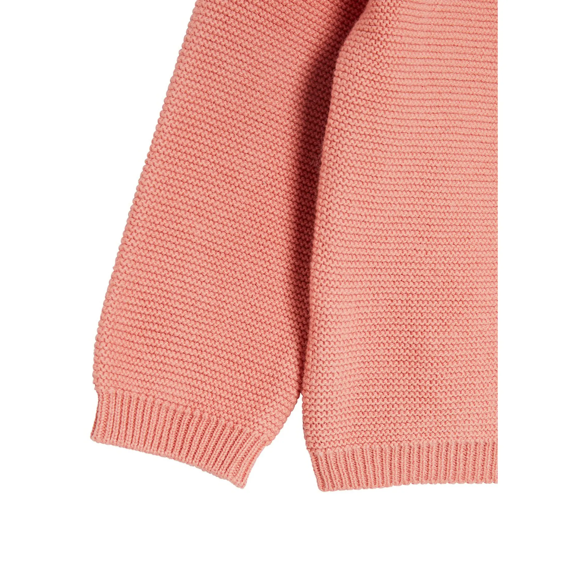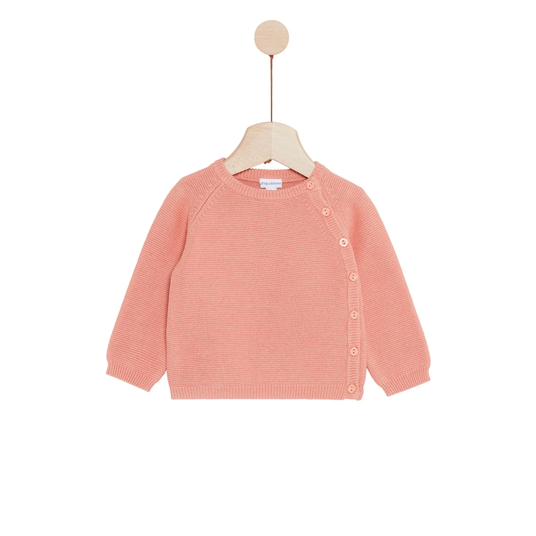 Ce pull est en point mousse qui donne un côté très cocooning et mode. La forme de ce pull est plutôt brassière avec une ouverture sur le côté avec des petits boutons.