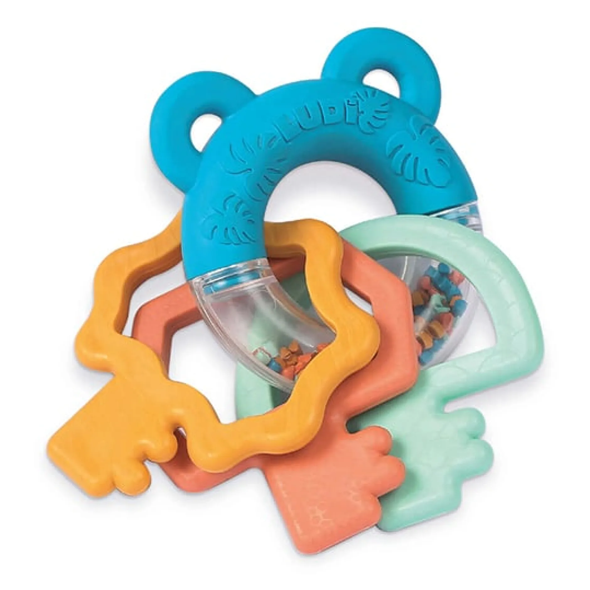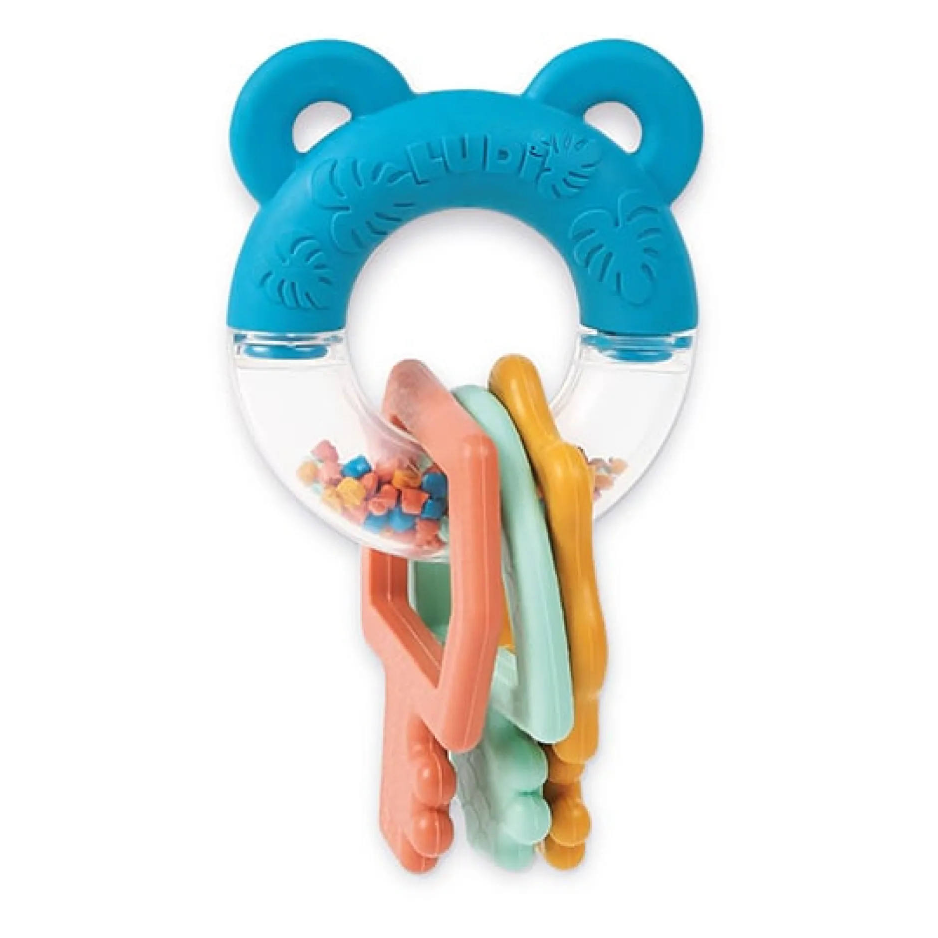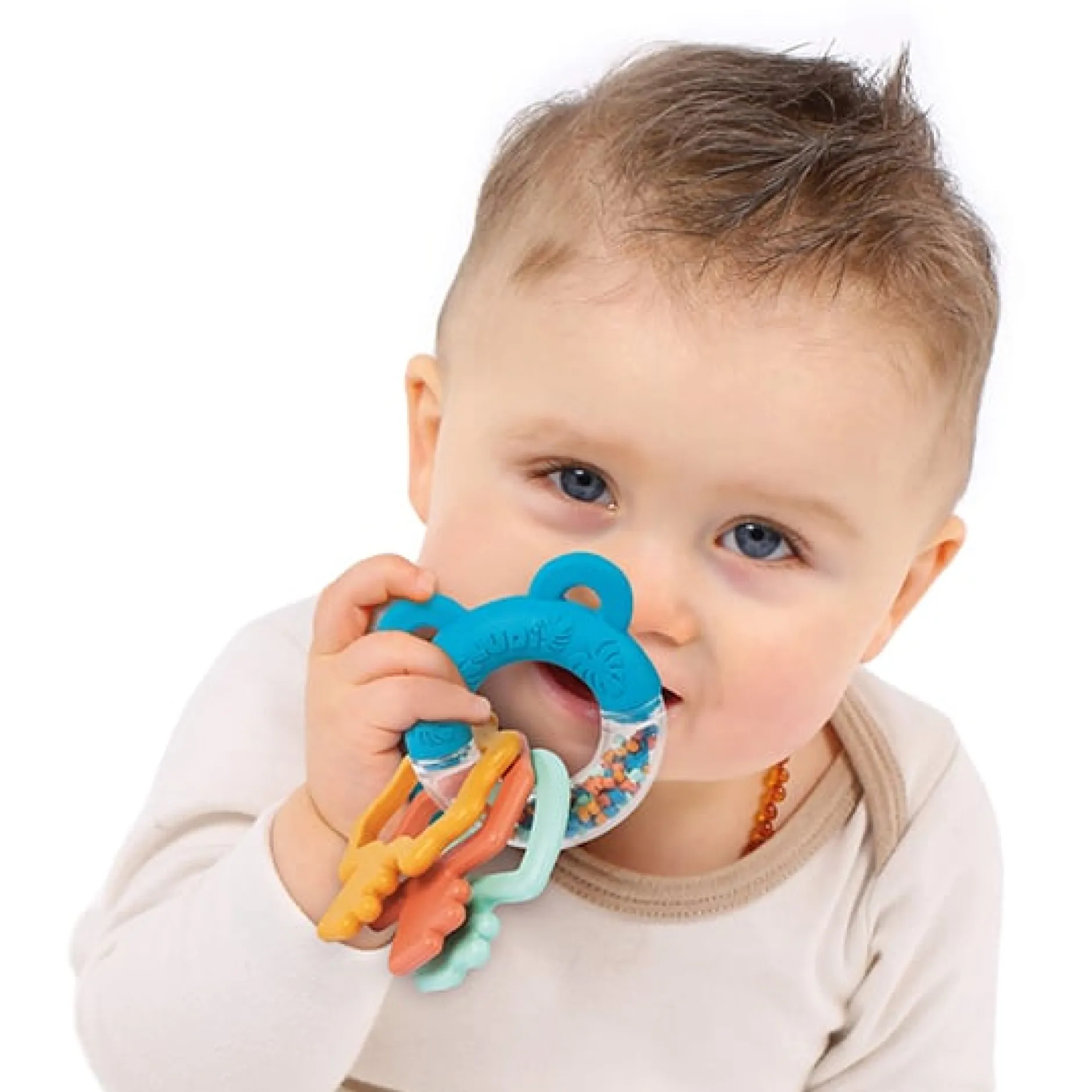 Les 3 clés texturées facilitent la prise en main du hochet.