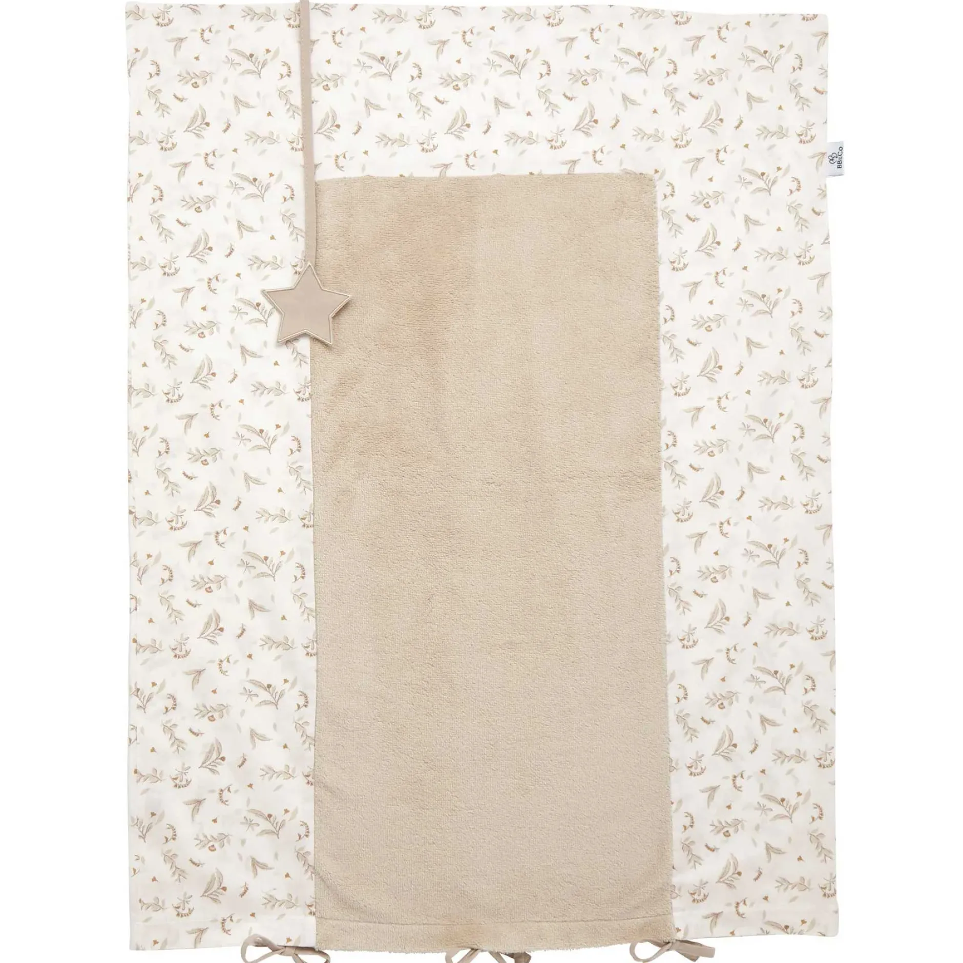 Ses dimensions et son système de fermeture à nouettes à la base lui permettent de s’adapter à la majorité des matelas à langer. Son petit plus : une adorable petite étoile mobile brodée.