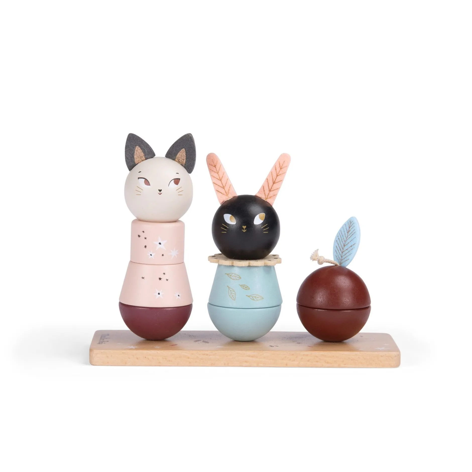 Un jouet à empiler en bois pour développer la capacité de l’enfant à manipuler et compter. Sur un socle en bois, empilez les parties en bois coloré pour recomposer les doux esprits d’Après la pluie… ou mélangez-les !