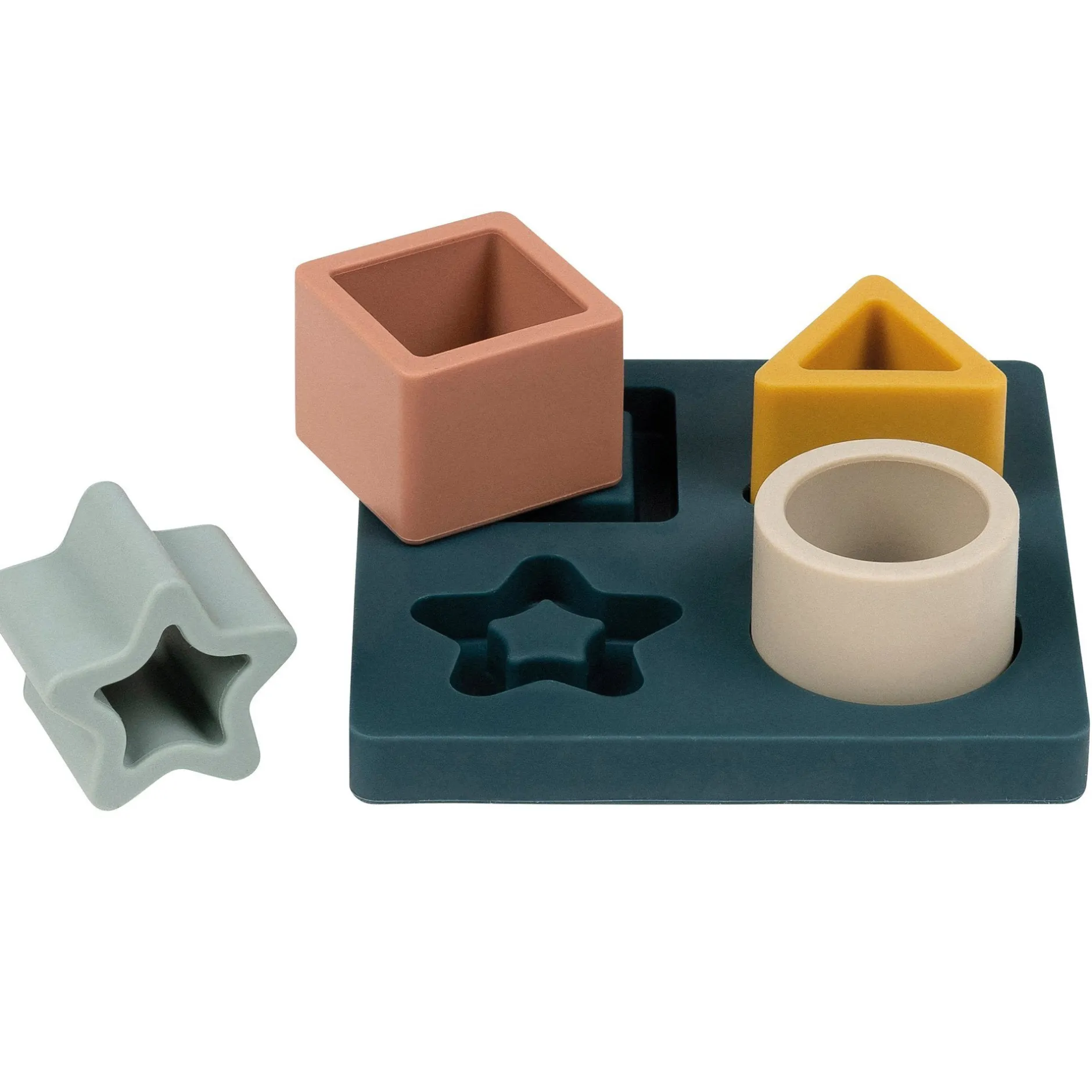 - Jouet composé de 4 formes creuses différentes : Carré, triangle, étoile, cercle.