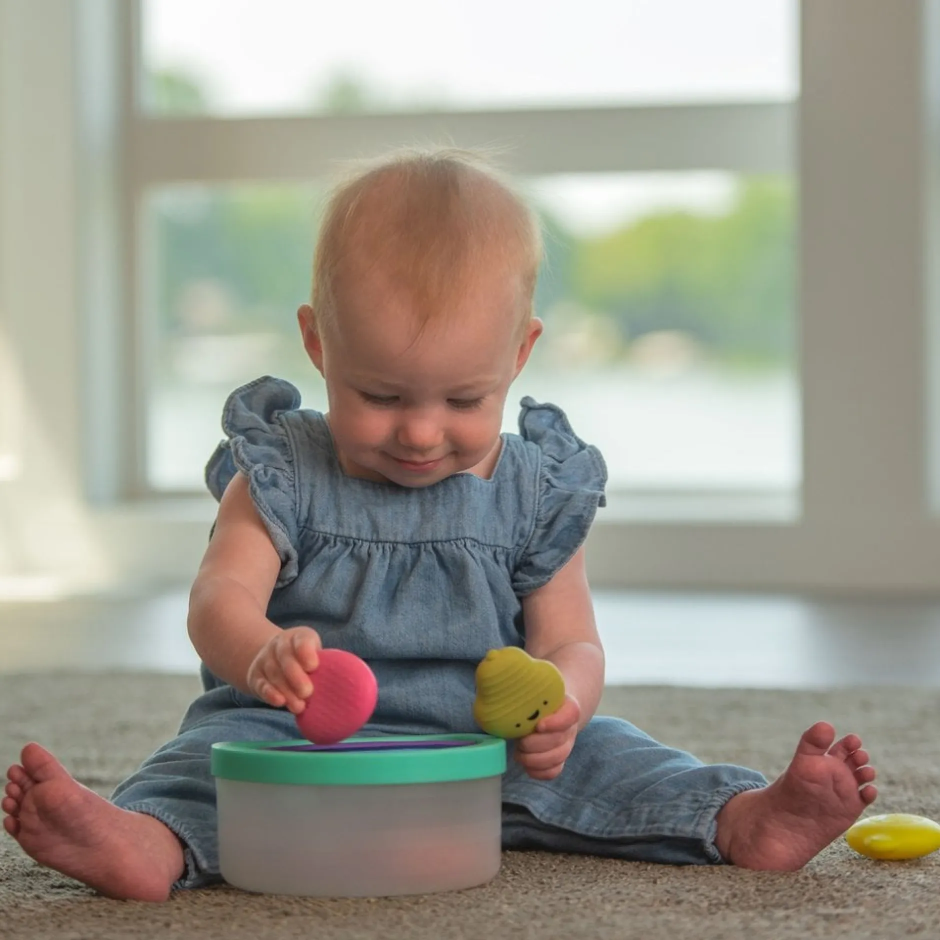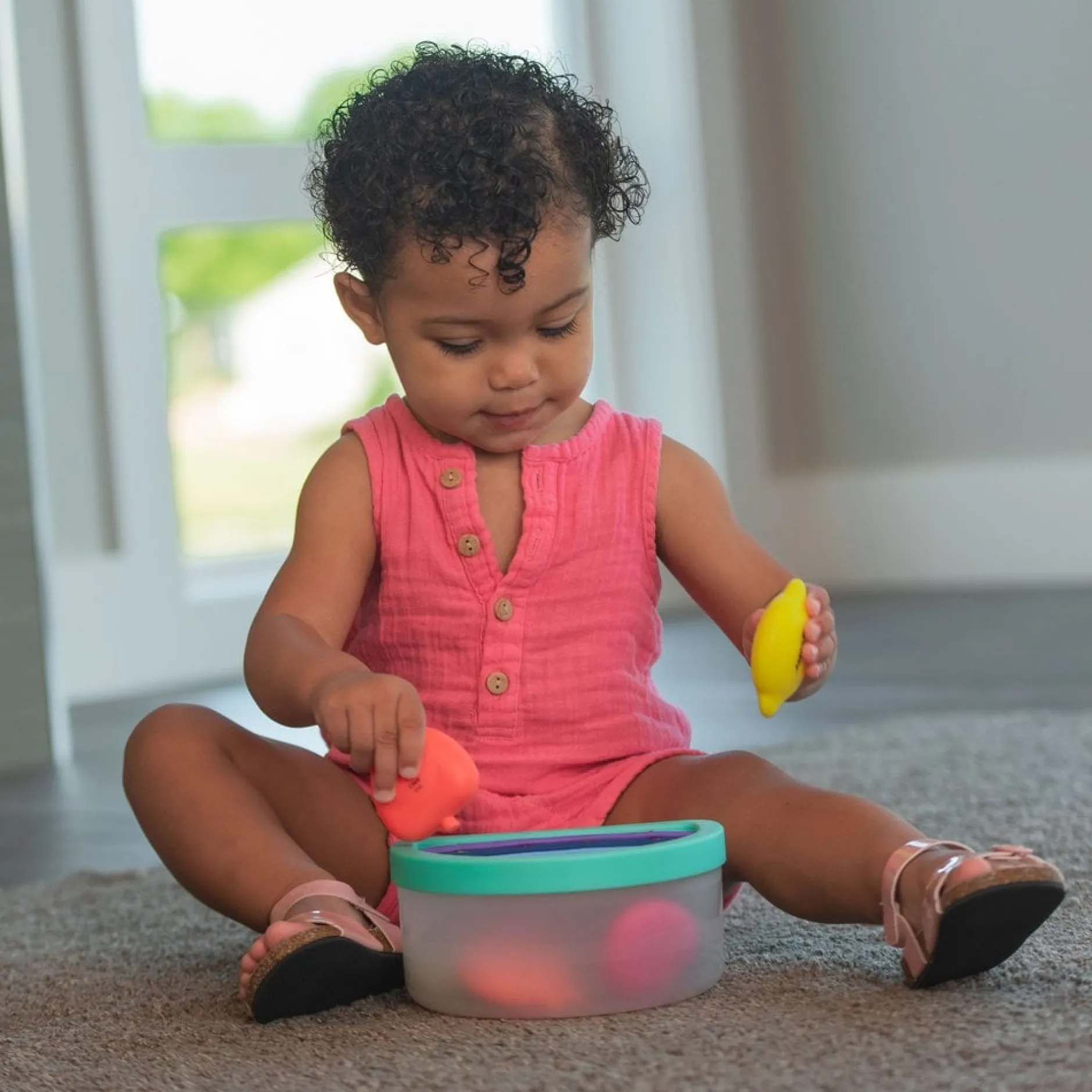 - Utilisez le récipient sans couvercle pour le mettre et l’emporter, une activité adaptée au développement de bébé.