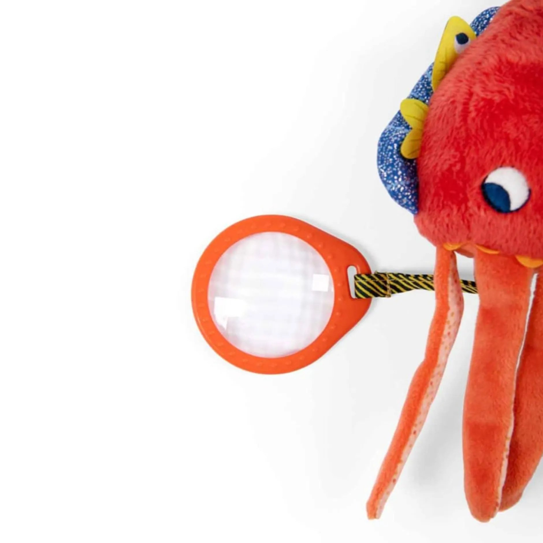 La seiche d’activités très colorée est sortie de l’océan pour jouer avec bébé : papier crissant, prisme, étiquettes à attraper… Elle s’accroche partout et peut être complétée par d’autres petites activités nomades de la collection.