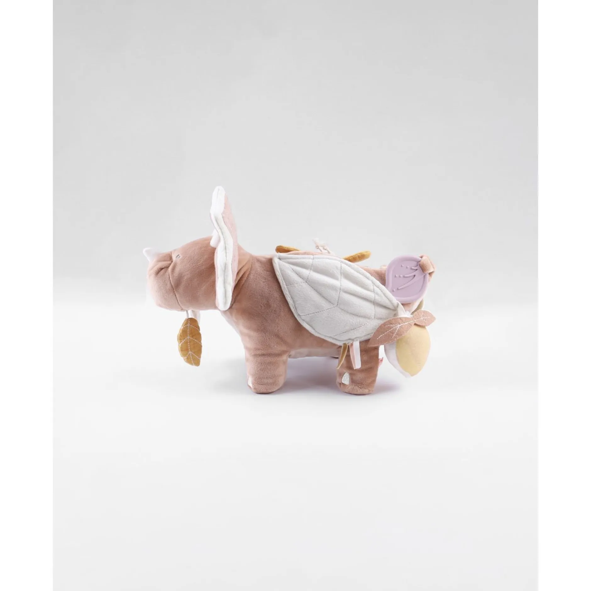 Popsie la gentille dinosaure offre de nombreuses activités : hochet aux billes multicolores, des jouets de dentition pour soulager les poussées dentaires, feuilles en papier froissé, un pouêt. Votre enfant explorera ce jouet et stimulera sa motricité, son développement intellectuel et ses sens à travers ces différentes activités : toucher, ouïe et vue seront alors stimulés. Petit plus: l’anneau TPE (caoutchouc synthétique, doux, non toxique et résistant.) facilite la préhension du jouet par bébé.