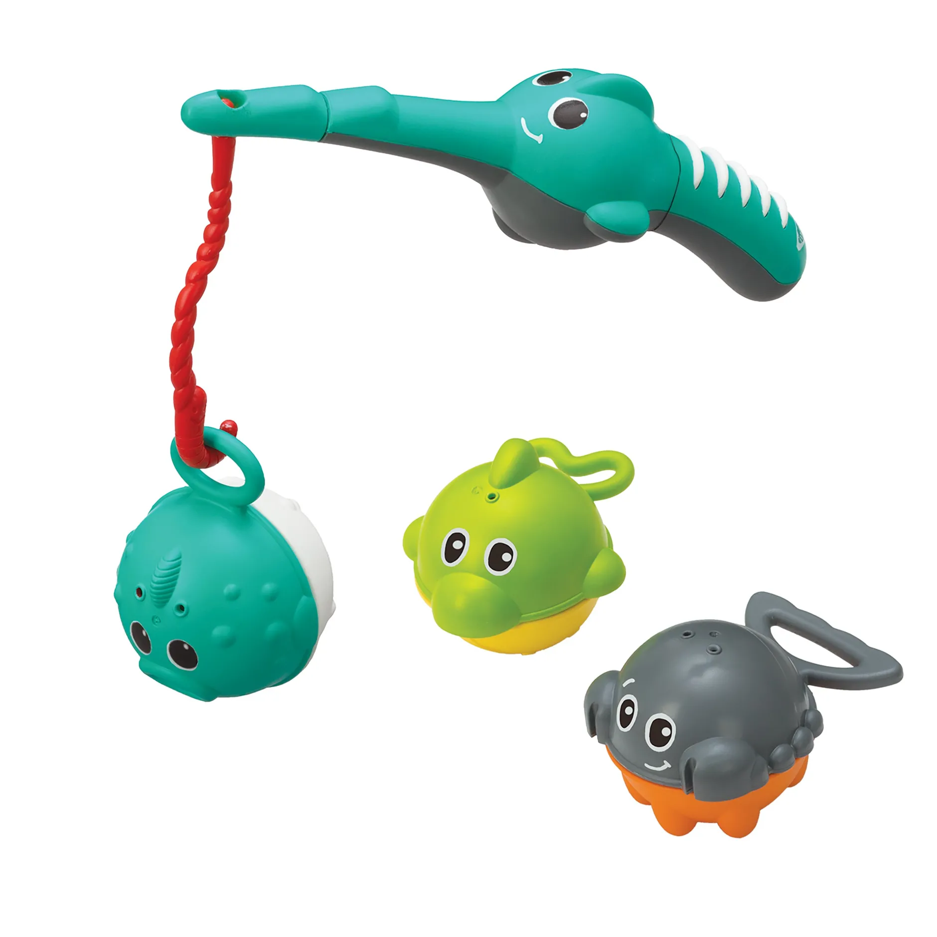 Lot de 17 jouets pour le bain. Ce coffret de jouets pour le bain révolutionne le rituel de bain de votre bébé ! L’un après l’autre, au fil de sa curiosité et de ses envies, votre enfant découvre une canne à pêche et trois amis de la mer à repêcher, quatre lanceurs d’eau, huit tasses à empiler et un moulin à eau à remplir et faire tourner. Ce coffret de bain encourage sa curiosité, sa dextérité et lui fait découvrir les différents effets de l’eau. Autant dire que le moment du bain ne sera plus jamais le même !
