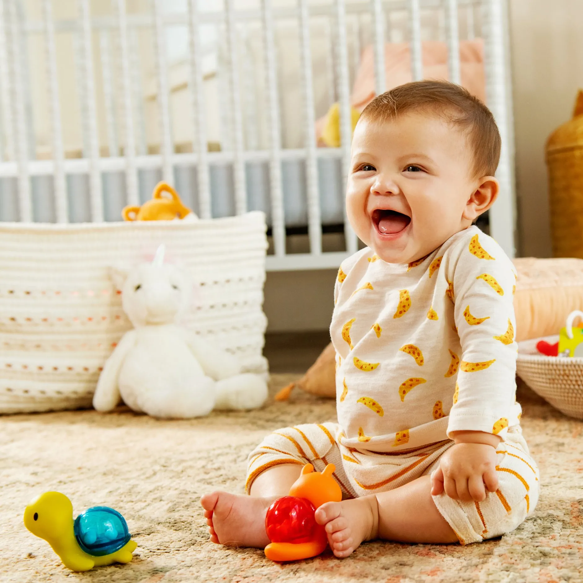 Amusants pour tous les âges, ces hochets constituent un excellent jouet pour le premier bain et permettent à bébé de s’amuser grâce aux sons, aux couleurs et aux textures.