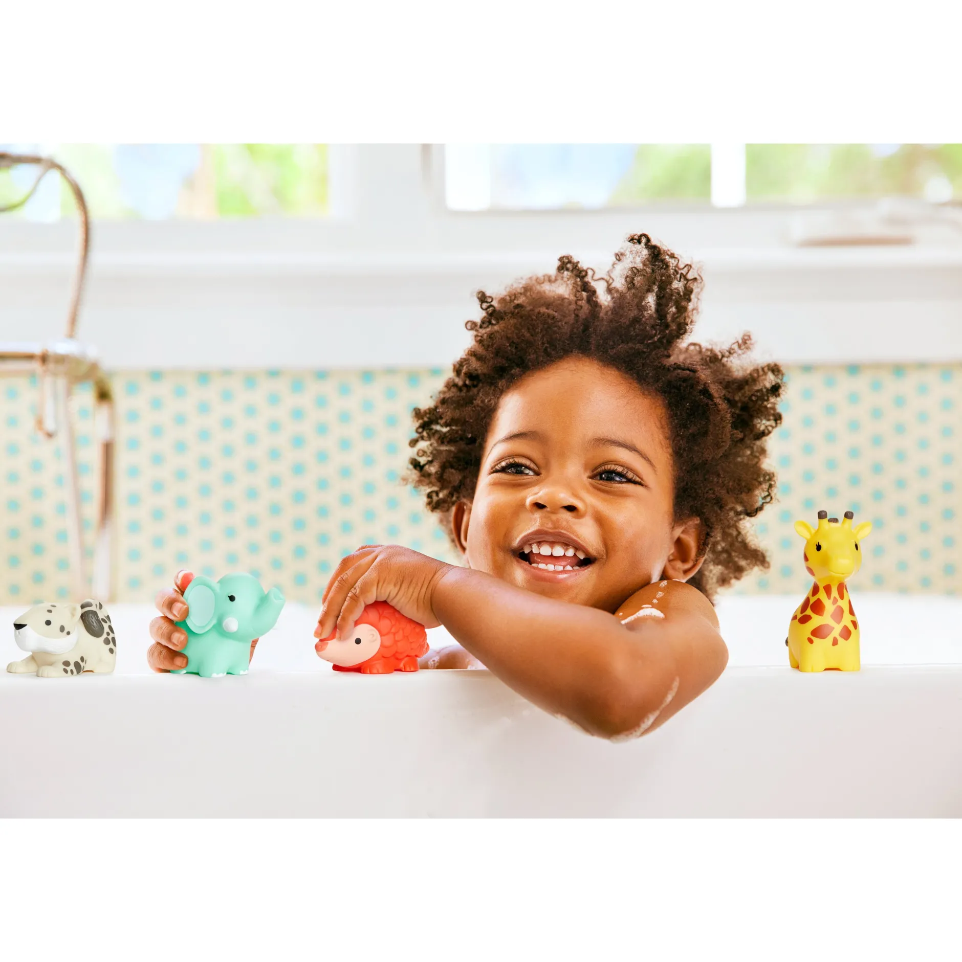 Cet ensemble de 8 animaux sauvages amis vont faire rugir de rire vos petits à l’heure du bain en plus de développeur leurs habilités motrices fines par le jeu. Chaque jouet de la faune flotte, gicle de l’eau, et est parfaitement dimensionné pour être saisi et compressé par les petites mains. « Plongez bébé à l’heure du bain dans l’univers des animaux sauvages avec cet adorable ensemble de jouets de bain gicleurs sur le thème de la faune sauvage ! La collection Animaux sauvages met en lumière les espèces menacées et les habitats en péril à travers des produits qui œuvrent pour leur cause. Cet ensemble de 8 animaux sauvages amis vont faire rugir de rire vos petits à l’heure du bain en plus de développeur leurs habilités motrices fines par le jeu. Chaque jouet de la faune flotte, gicle de l’eau, et est parfaitement dimensionné pour être saisi et compressé par les petites mains. Chaque achat d’animaux sauvages gicleurs contribue à soutenir l’association Fund for Animal Welfare partout dans le monde.• Assortiment de 8 animaux sauvages pour le bain qui flottant et giclant de l’eau• Chaque jouet de la faune représente une espèce menacée ou en voie d’extinction : éléphant d’Afrique, girafe, koala, pangolin, léopard des neiges, tigre, rhinocéros et ours polaire• Parfaits pour les jeux de bain et de simulation, mais aussi pour faire des bulles sous l’eau• Les jouets de bain souples compressibles aident le bébé à développer des habiletés motrices fines• Modèles de jeu : Action + Réaction ; Coordination Main + Yeux• Pour les + de 9 mois »