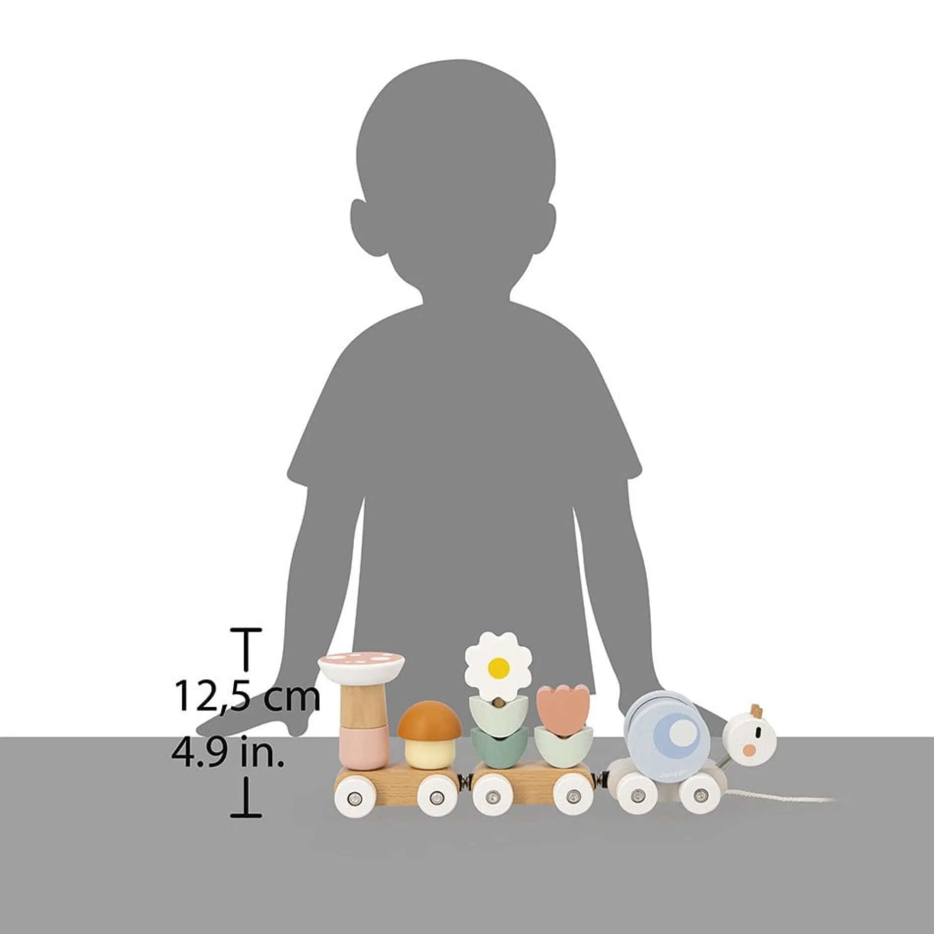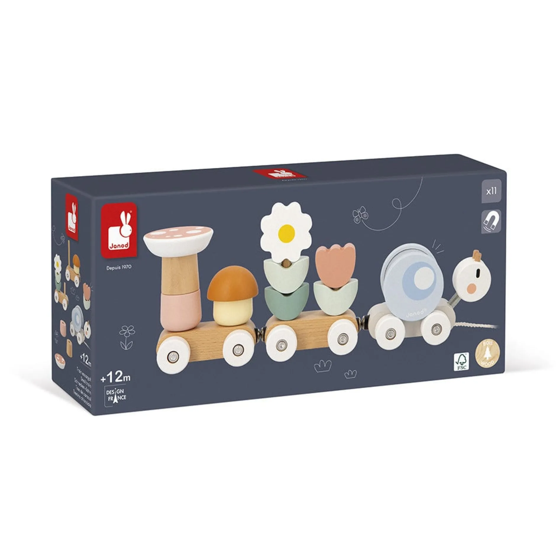 Jouet à tirer, mais également jeu de construction, ce joli jouet d’éveil se compose de 3 wagons magnétiques et de 10 pièces à assembler. Les diverses formes, tailles et couleurs des éléments favorisent l’éveil sensoriel de votre tout-petit.