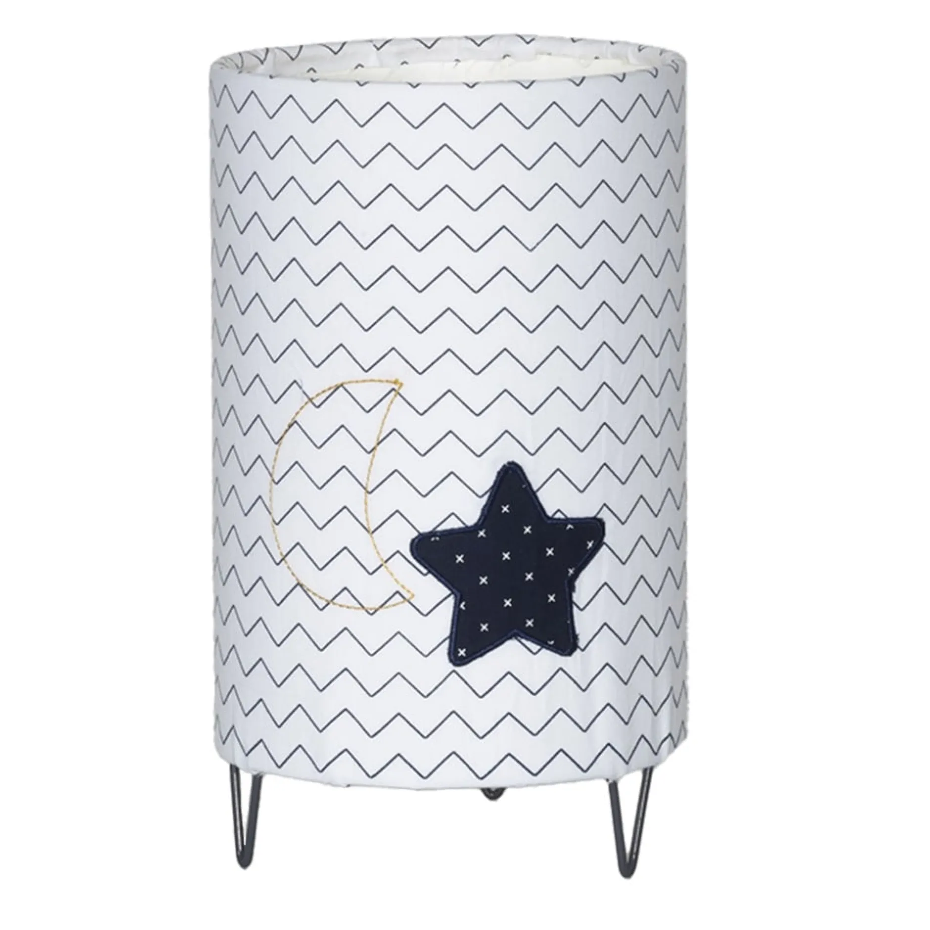 Lampe à poser de la collection Hello avec structure métallique. Idéale pour décorer la chambre de bébé grâce à sa broderie sur l’abat-jour, cette lampe sera également parfaite pour les moments lecture.