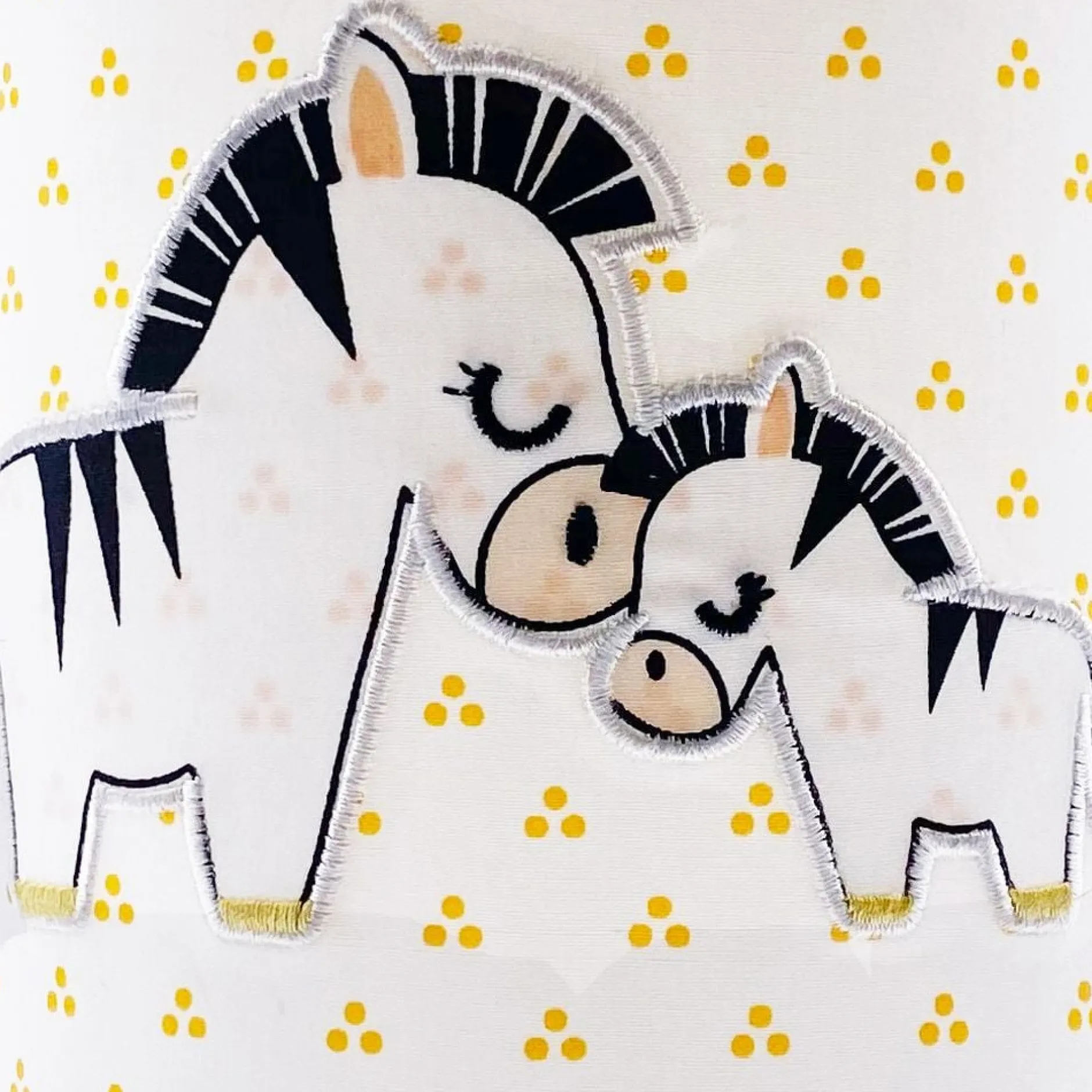 Lampe à poser ronde Pluche et Pompon avec structure métallique. Deux petits zèbres en application sont cousus sur l’abat-jour en coton. Cette lampe sera idéale pour la lecture du soir et apportera une touche ludique tout en douceur à la chambre. Puissance : 40W maxi.