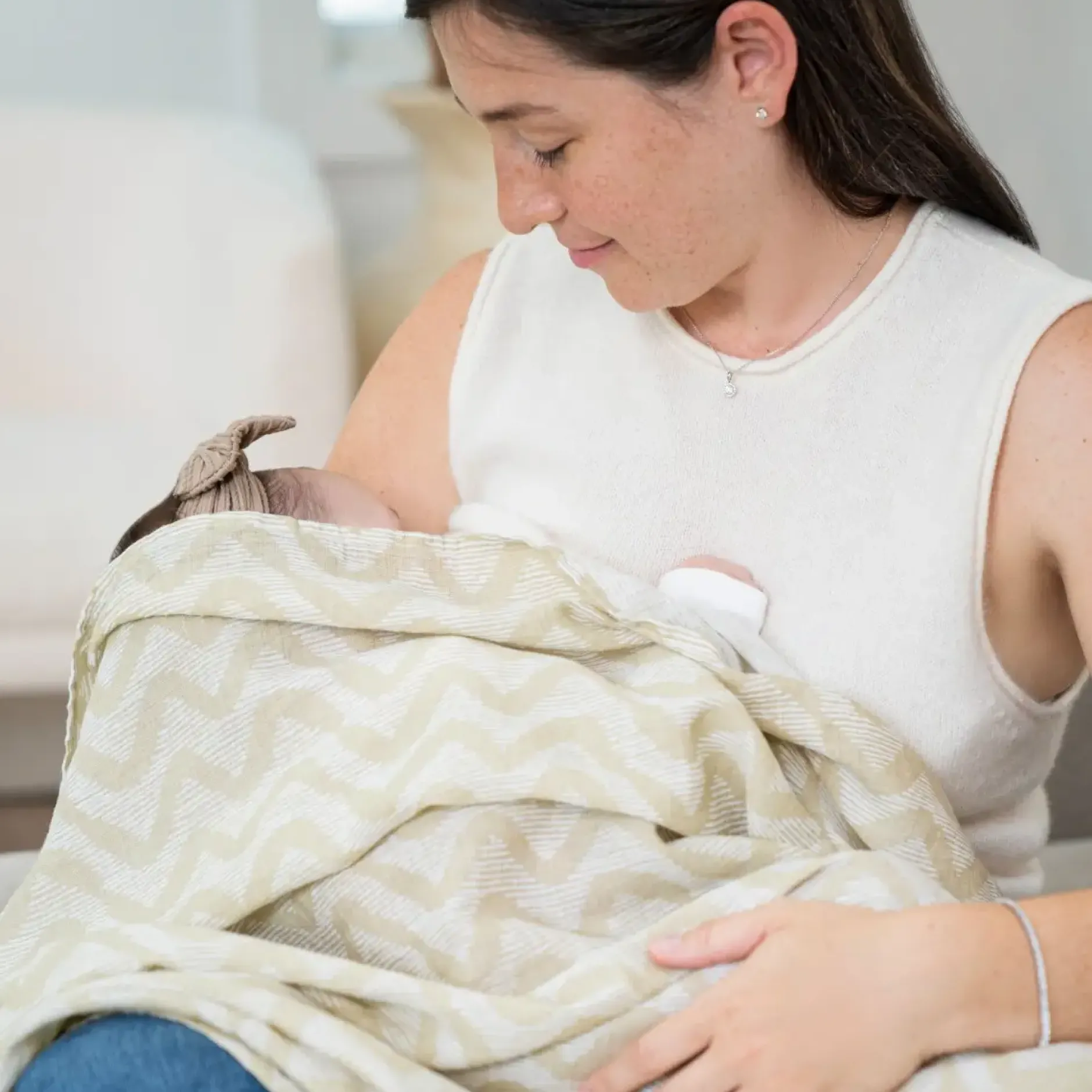 Respirants et doucement enveloppants, les maxi-langes en mousseline 100 % coton Aden + Anais essentials offrent confort aux tout-petits et tranquillité d’esprit aux parents. On dit que l’emmaillotage parait naturel aux bébés, car il recrée le sentiment de confort et de sécurité ressenti dans le ventre de leur maman. L’emmaillotage empêcherait également les mouvements spontanés, appelés réflexes de Moro ou de sursaut, qui les réveillent, améliorant ainsi la qualité du sommeil.