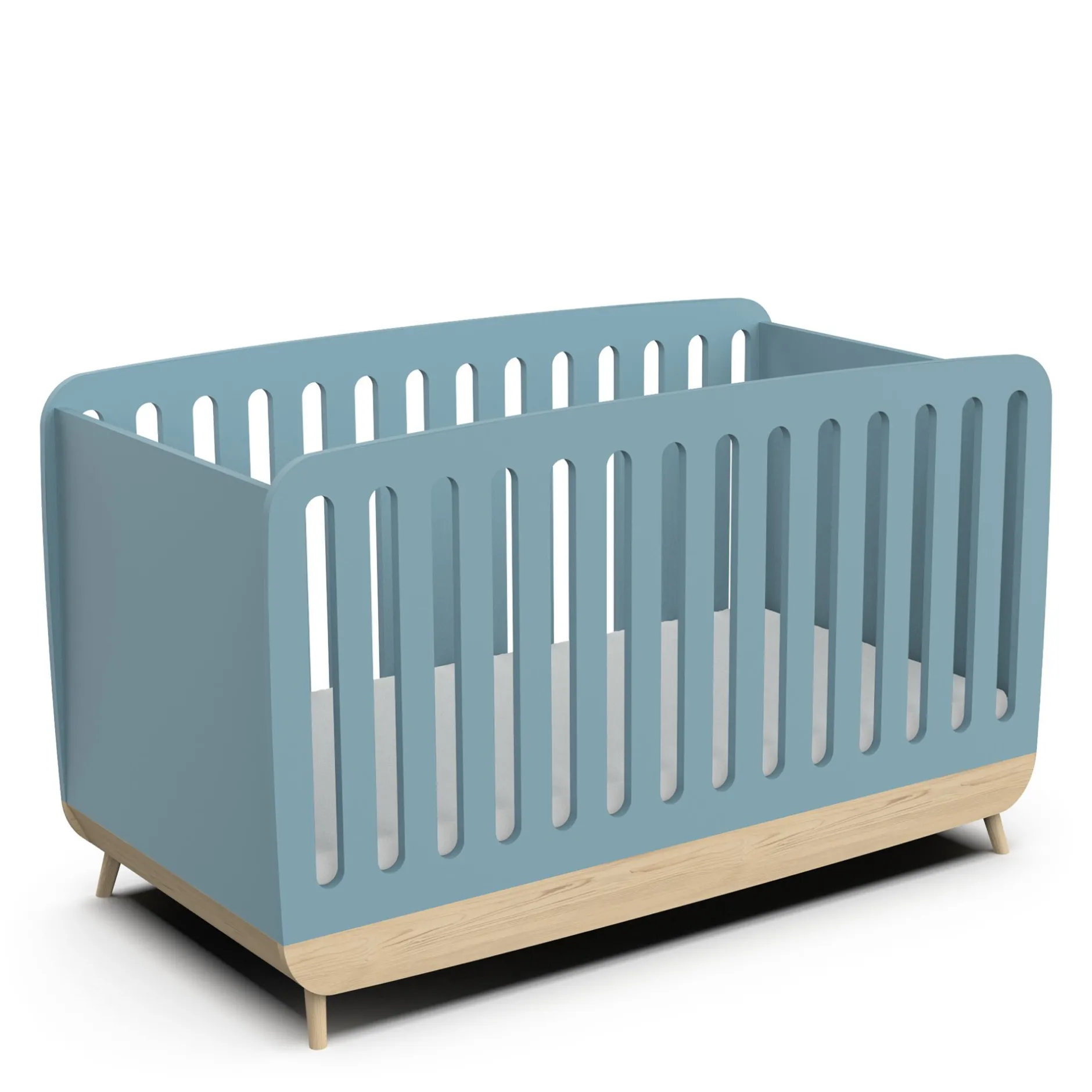 Lits 70X140 Évolutifs*CBA Meubles Firmiana Lit Bébé 70 x 140 cm de Bleu Orage / Bois Naturel