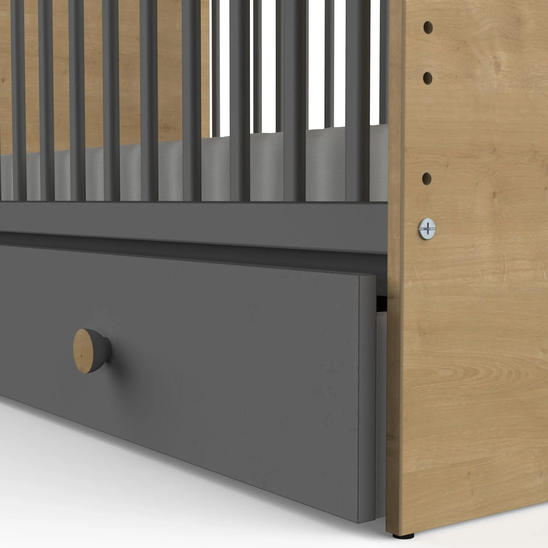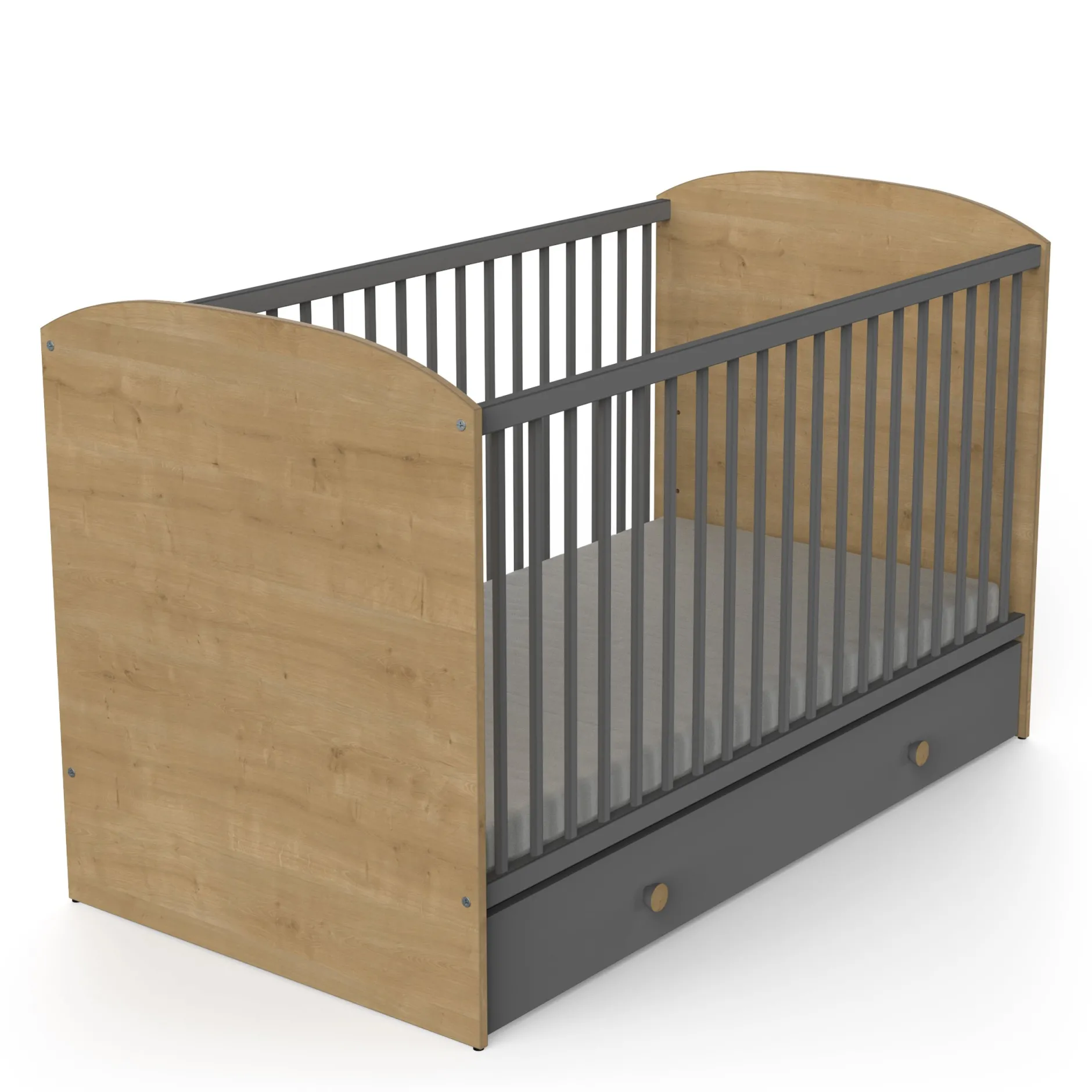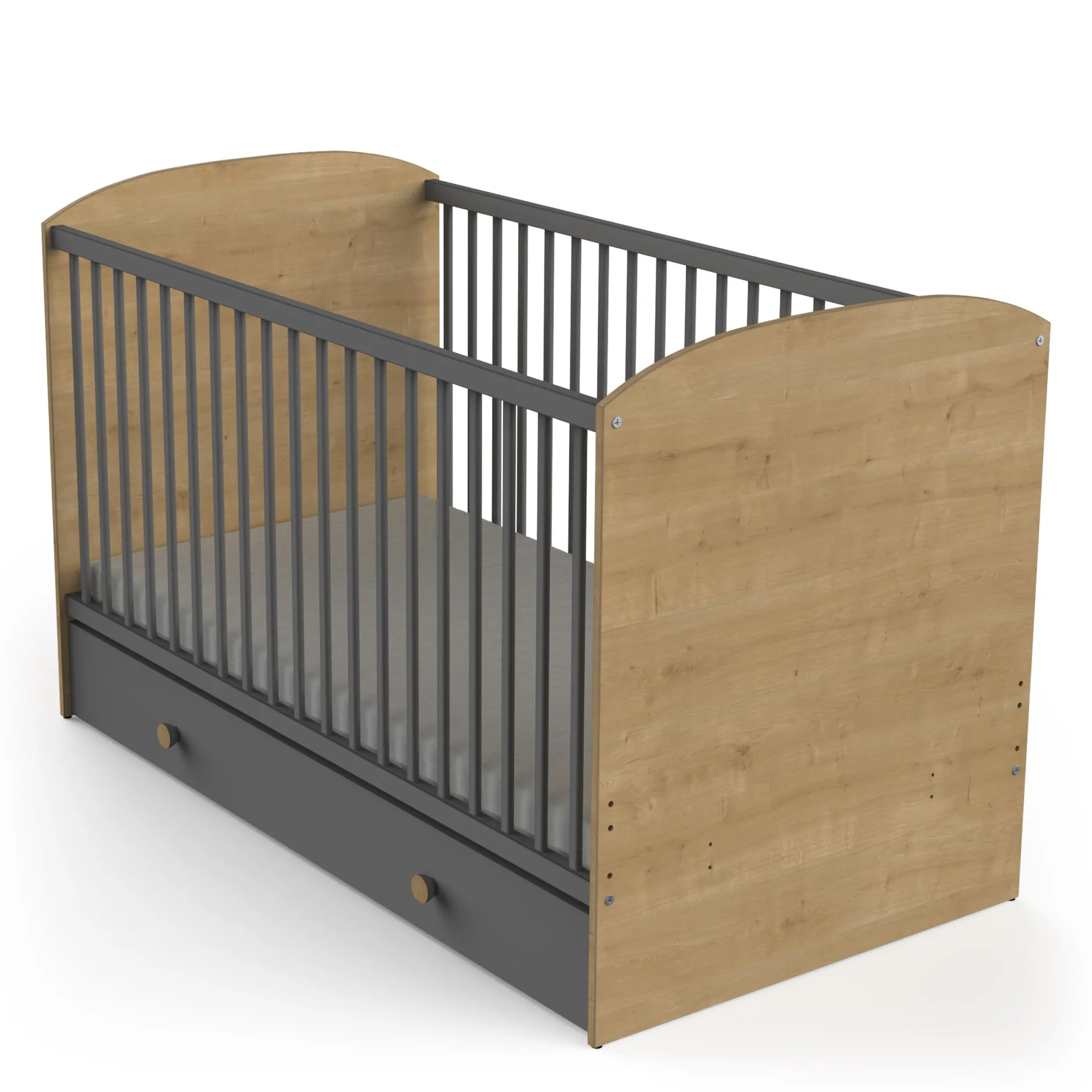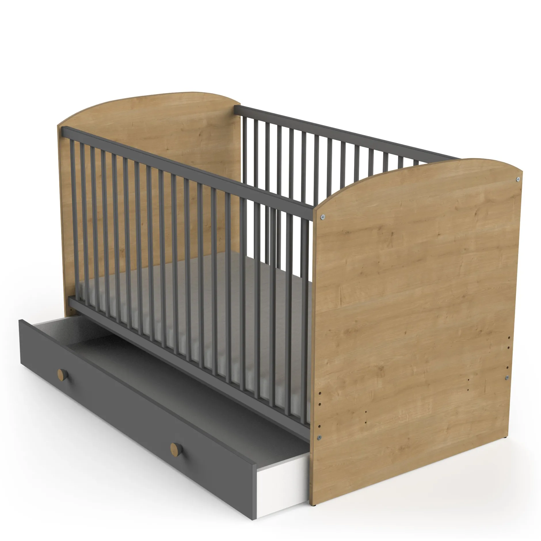 Plongez dans le monde pur et naturel de la collection GABIN avec un somptueux mélange de coloris chêne naturel et gris graphite. Une chambre de bébé parfaite dans un style contemporain.