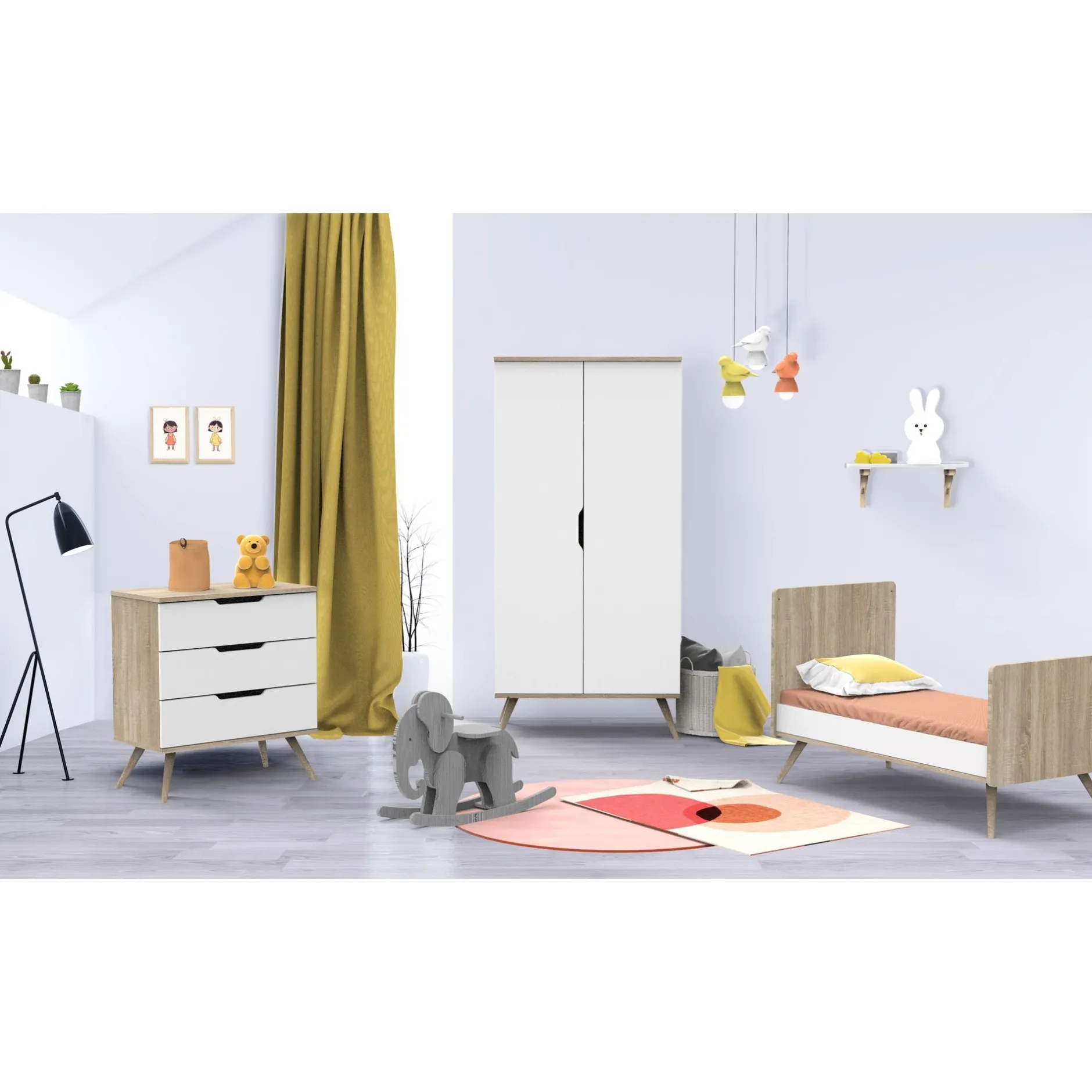 Il n’y a pas d’âge pour le retro ! Cela tombe bien, car ce lit Little bid Bed 70×140 de la collection SIXTIES va accompagner votre enfant de sa naissance à ses 7 ans environ. Si vous allez aimer son style avec son piétement oblique et son décor bois chaleureux, vous allez adorer son côté évolutif ! De la naissance à ses 3 ans environ, votre bébé profitera de son lit à barreaux 70×140 cm. Pratique, son sommier est réglable sur 3 hauteurs. Puis, au moment choisi, vous pourrez utiliser les éléments de transformation pour lui offrir un lit de grand. Dormez tranquille, ce lit répond à toutes les normes de sécurité.