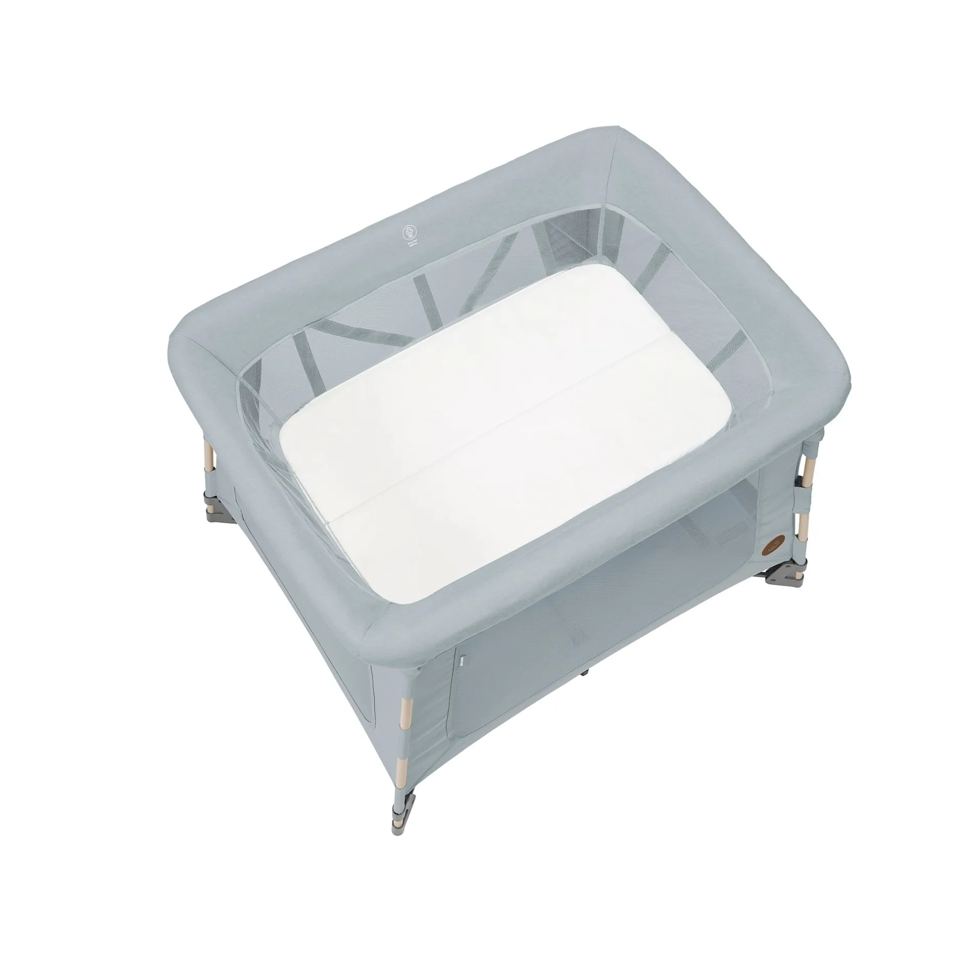 Voici Maxi-Cosi Swift. Un lit de voyage 3 en 1 élégant et polyvalent qui peut être utilisé comme berceau pour nouveau-né, lit bébé et parc robuste. Et avec seulement 7 kg, c’est le plus léger de se catégorie. Avec son système de pliage en une seconde, Swift s’installe, se replie et se réinstalle rapidement, à domicile ou en déplacement.