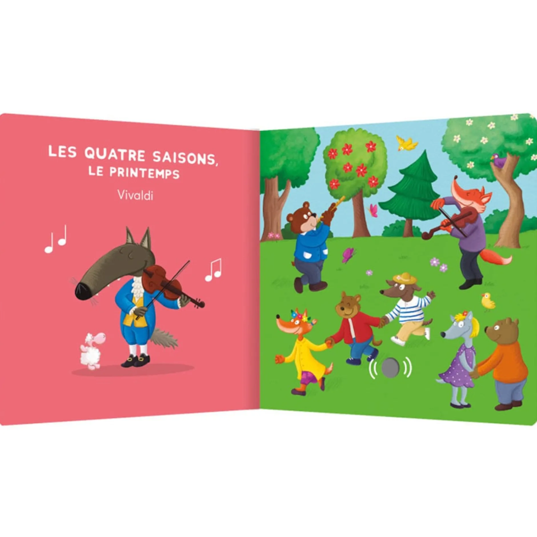 Découvre la musique classique avec P’tit Loup ! Dans cet album sonore, écoutez 6 extraits des musiques classiques les plus connues La Marche Turque, Mozart Les quatre saisons, Vivaldi Danse hongroise n°5, Brahms Le Lac des cygnes, Tchaïkovski L’hymne à la joie, Beethoven Boléro, Ravel