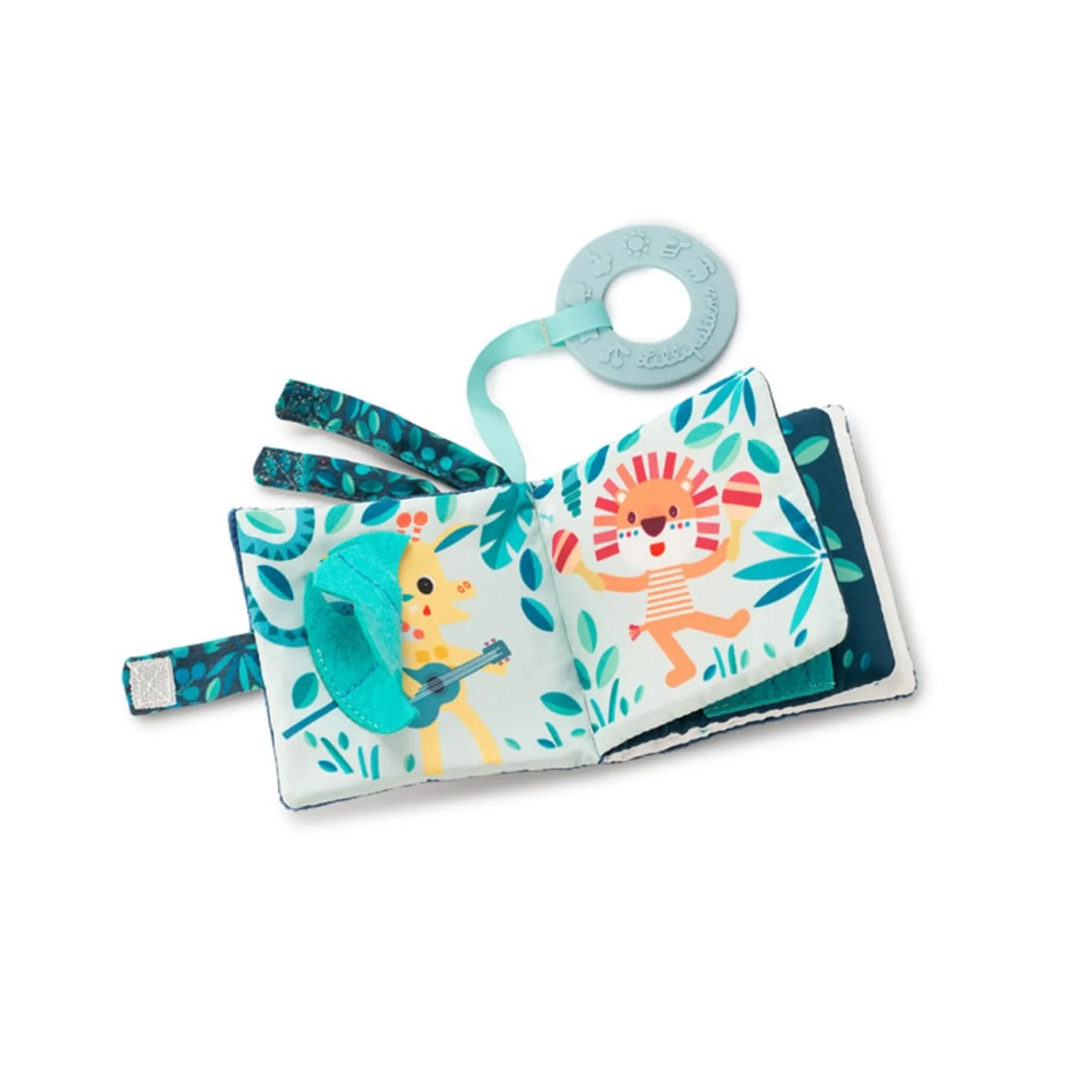 Le petit plus de cet imagier Lilliputiens, c’est l’anneau de dentition bleu qui lui est accroché. C’est idéal pour soulager les gencives douloureuses quand les dents commencent à faire leur apparition !