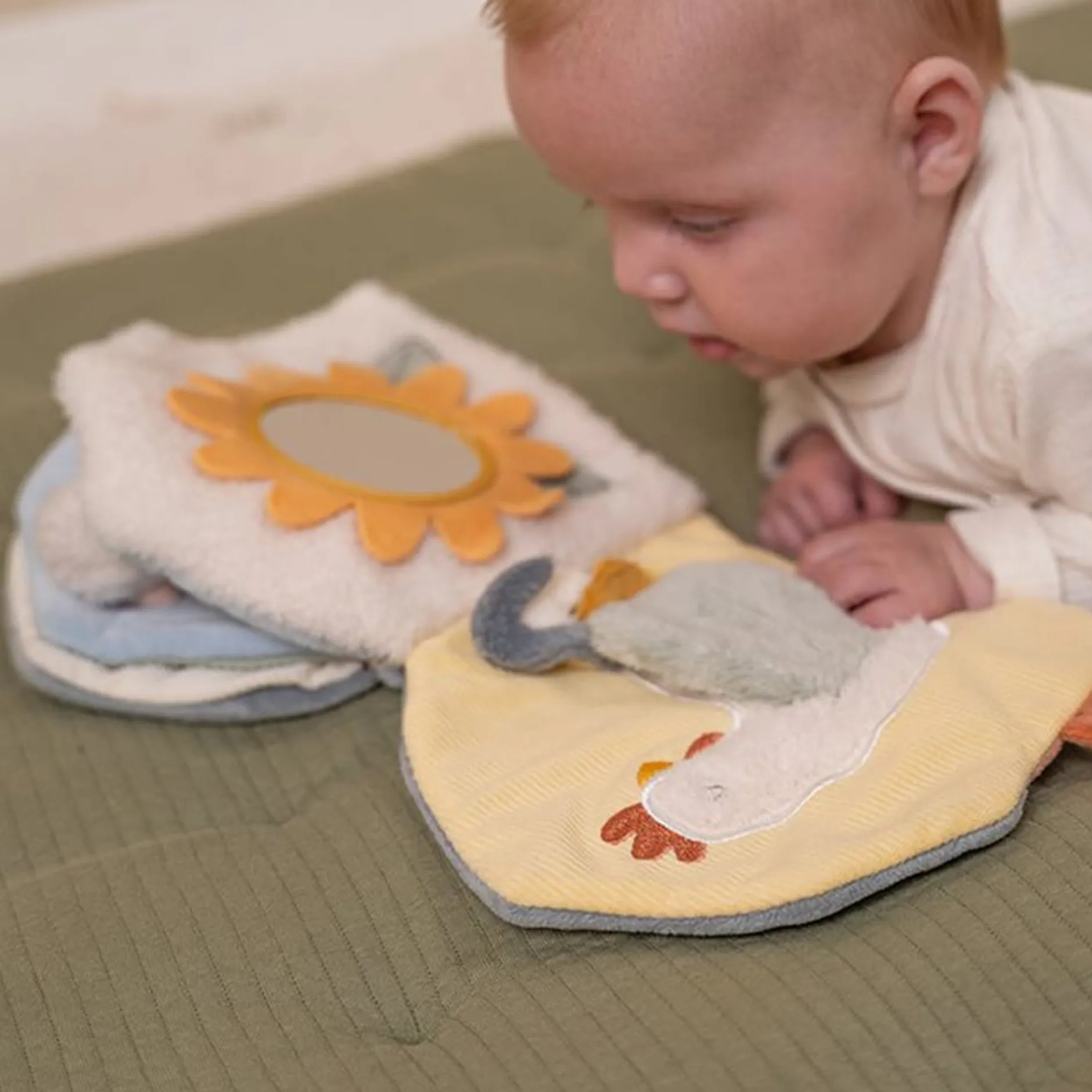 Les bébés ne s’ennuient jamais avec ce livre d’activités coloré de Little Farm en forme de grange. Il y a tellement de choses à découvrir avec les différents matériaux et activités, comme un miroir, un hochet et des jouets cachés.