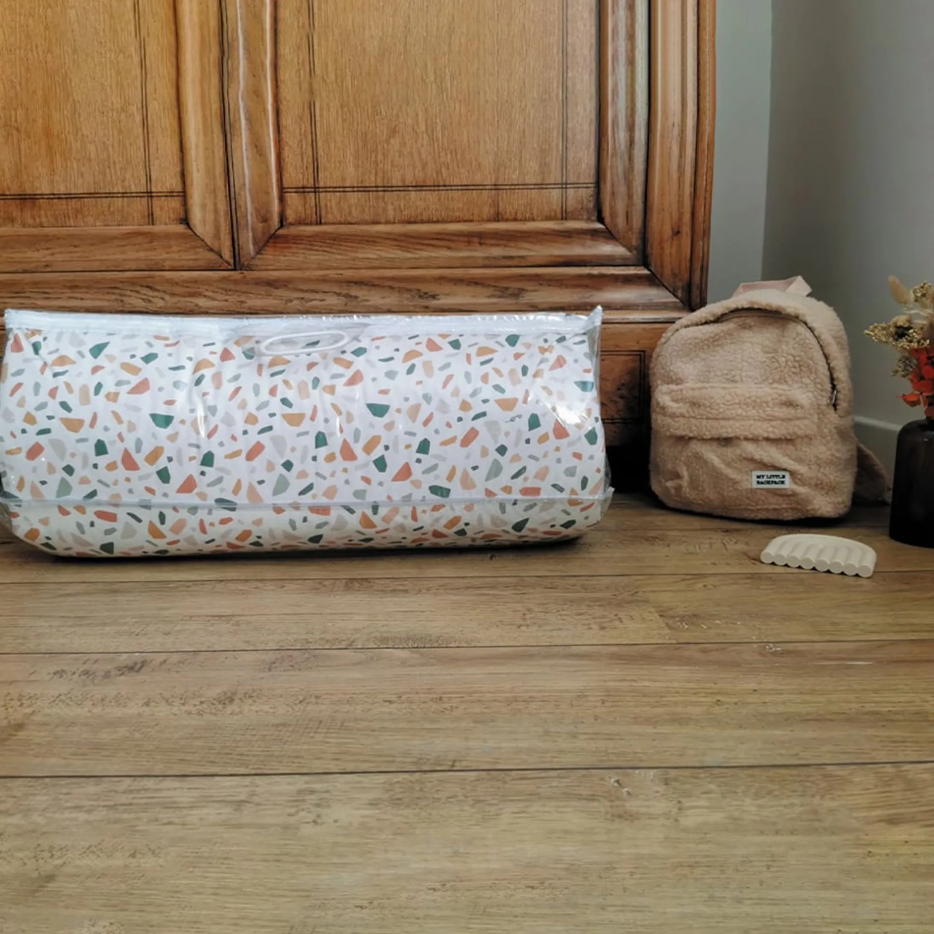 - Roulez-le : très pratique, vous pouvez l’enrouler facilement, il ne prend pas de place. Il devient simple de transporter votre matelas bébé partout avec vous !