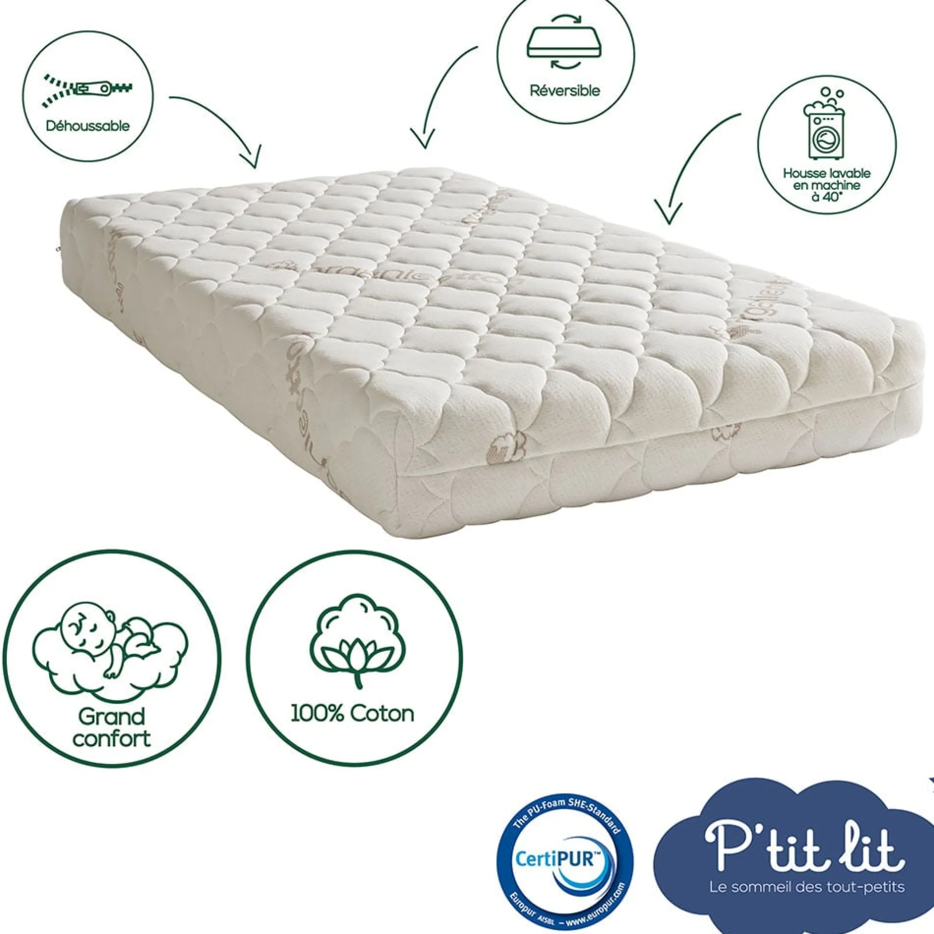 Pour un confort douillet, ce matelas en coton bio* est tout doux et sans traitement. Un matelas facile et conseillé pour tous les bébés et qui assurera un sommeil sain et paisible à votre enfant.