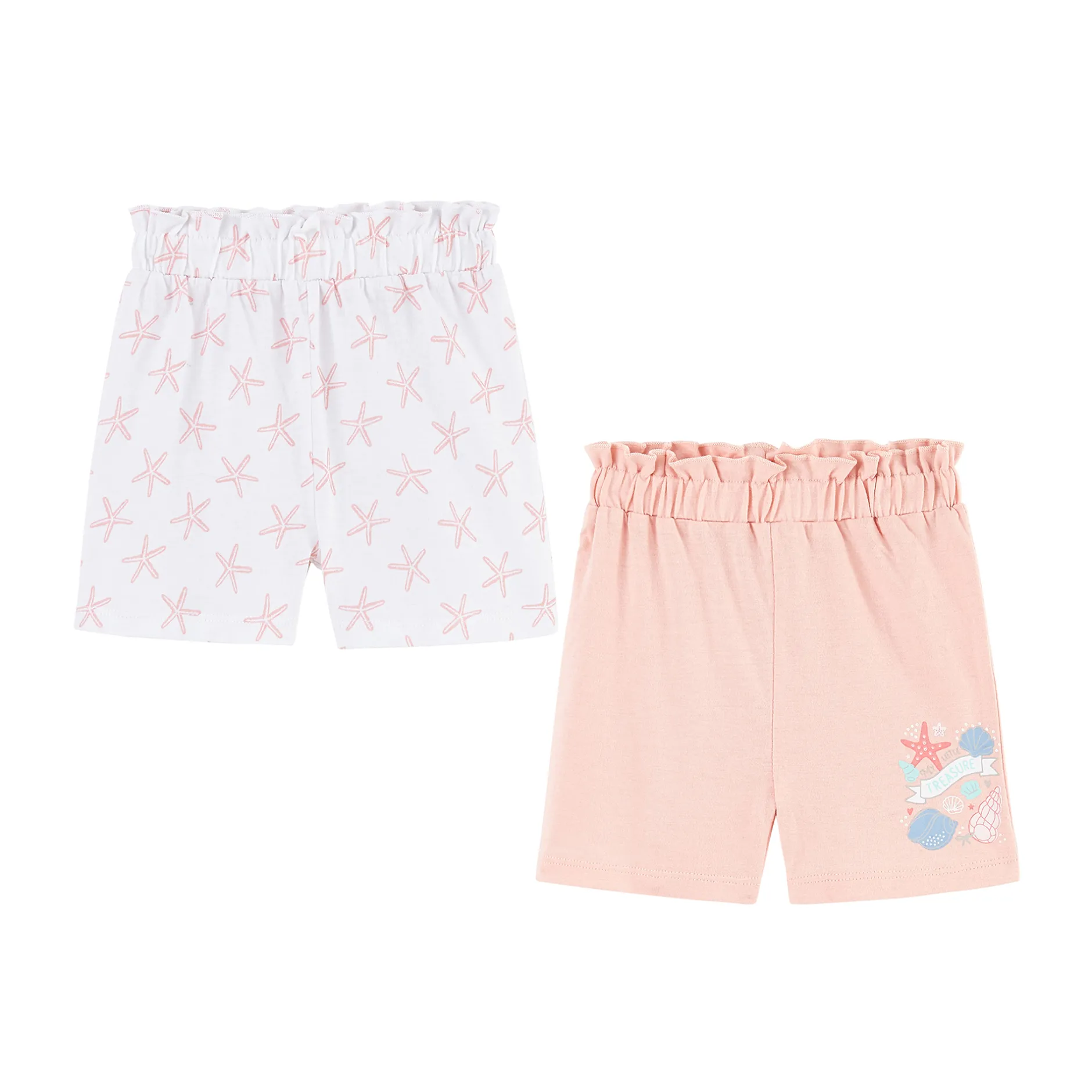 Quoi de plus estival que ce lot de 2 shorts :un blanc allover étoiles de merun rose avec un petit imprimé en bas à dr…