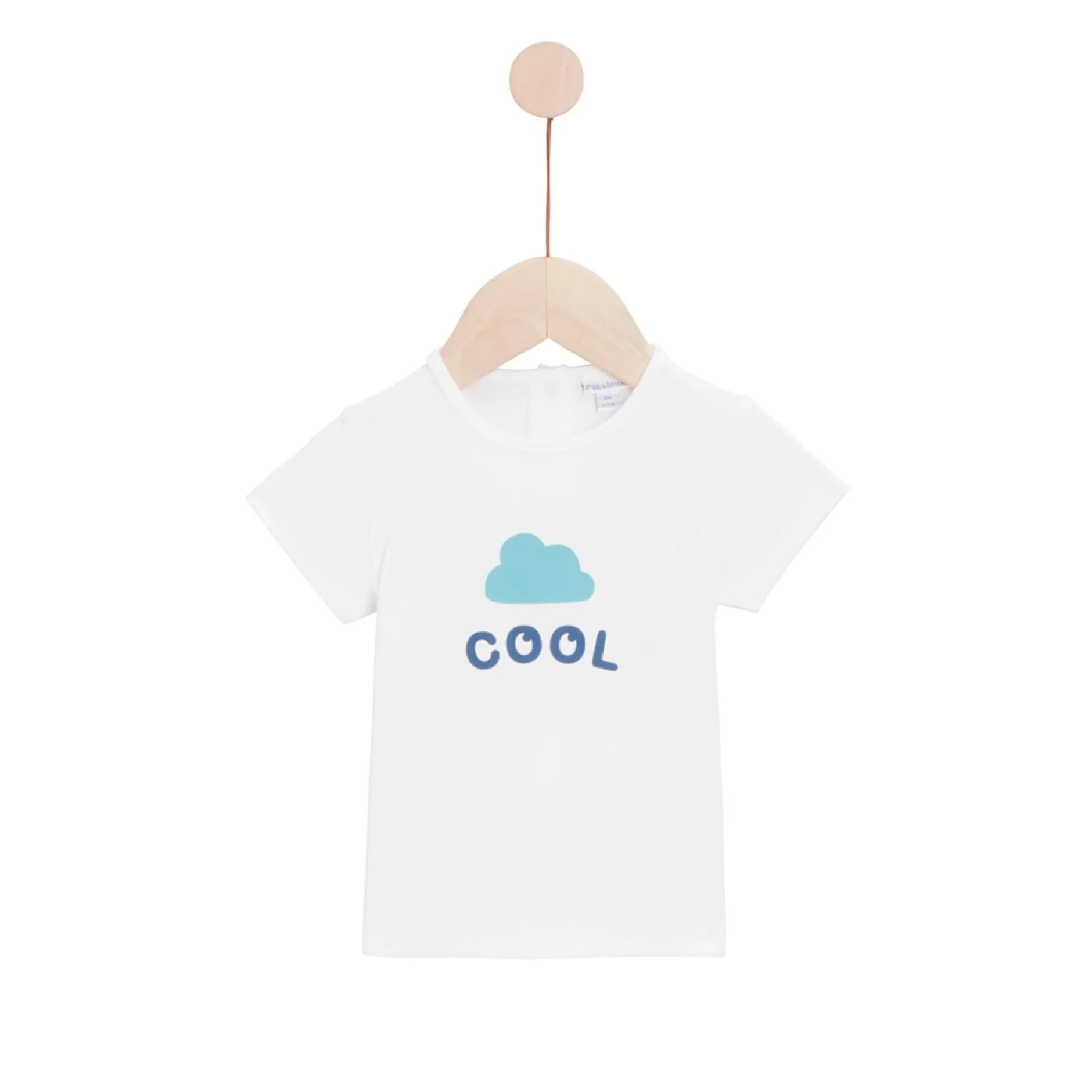Le tee shirt manches courtes et a encolure ronde est très mignon avec son imprimé devant représentant un nuage et un texte « cool ». Ouverture dans le dos par des petites pressions.