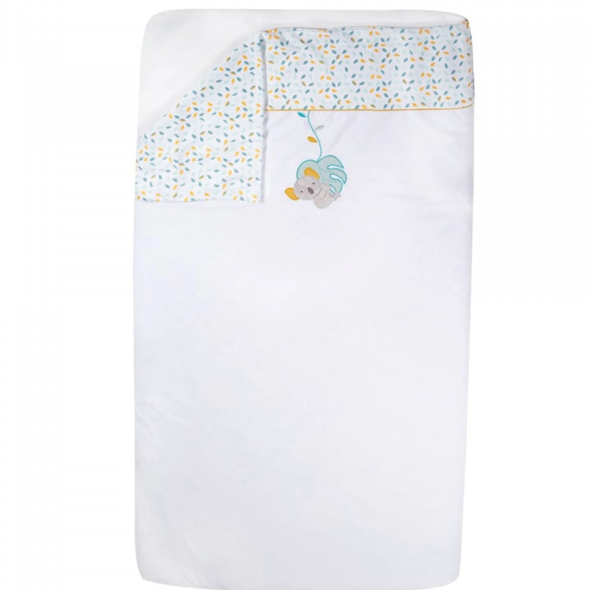 Ultra douce et confortable, cette jolie housse de couette bébé en velours sublimera la parure de lit et la décoration de la chambre de votre tout petit. Réversible, vous pourrez changer de temps en temps de style. Une face est imprimée all-over de feuilles moutardes et vertes nuancées. L’autre côté est blanc unie décoré d’un adorable petit koala suspendu à une feuille. Cette partie est contrasté d’une bande parsemée de feuillage et d’un liseré moutarde.