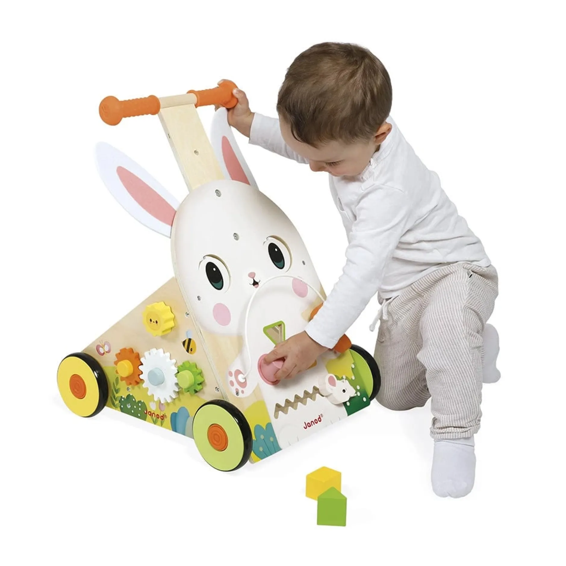 Toute la famille va adorer voir bébé se déplacer dans la maison avec son joli chariot lapin, composé de bois certifié FSC™. Il ne reste plus qu’à baptiser ce nouvel ami ! Les plus : Un joli lapin pour découvrir et bouger, dès 12 mois