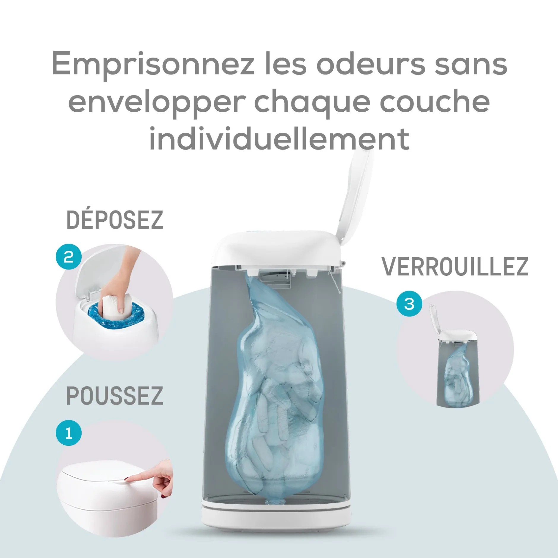 - Et grâce à sa housse déco disponible en 10 modèles, accordez votre poubelle à couches avec la chambre de bébé !