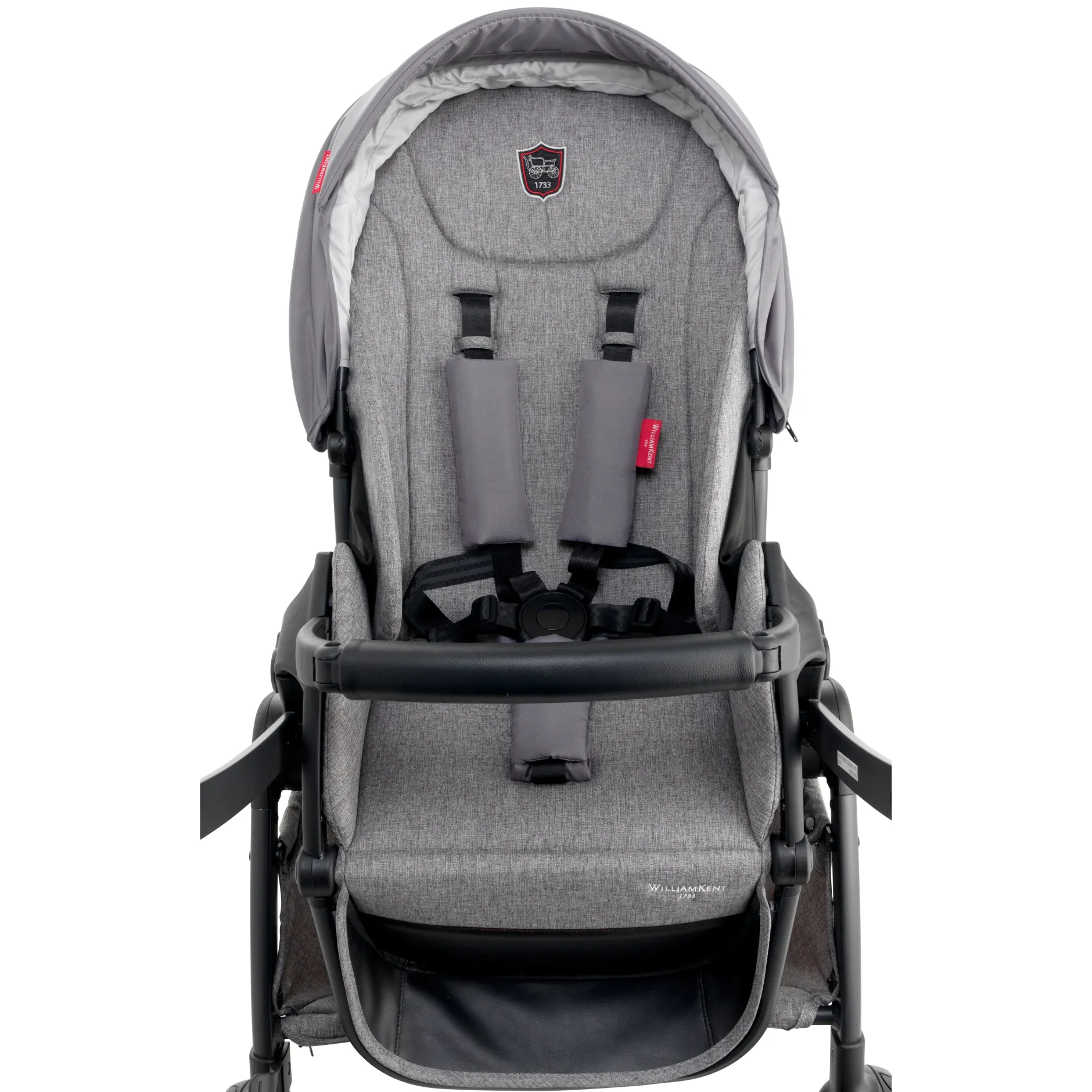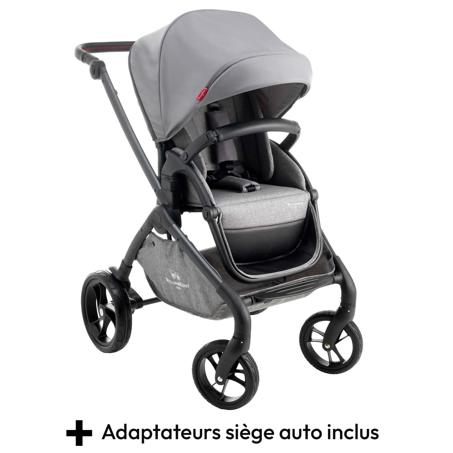 Grâce aux adaptateurs inclus, cette poussette est compatible avec le siège auto coque Orion de William Kent 1733. En utilisation combinée avec le siège auto, ce véhicule est utilisable de la naissance et jusqu’à 13kg.