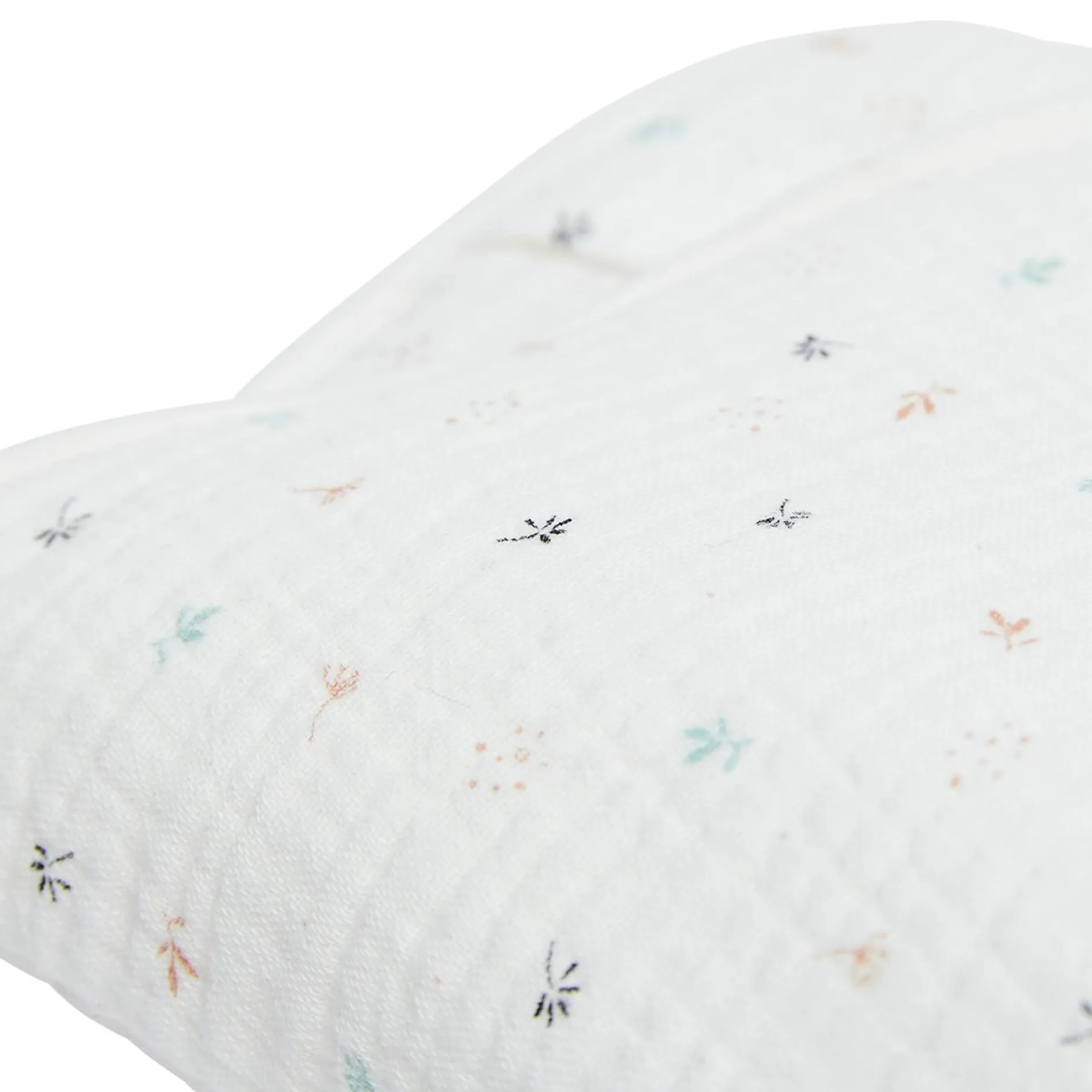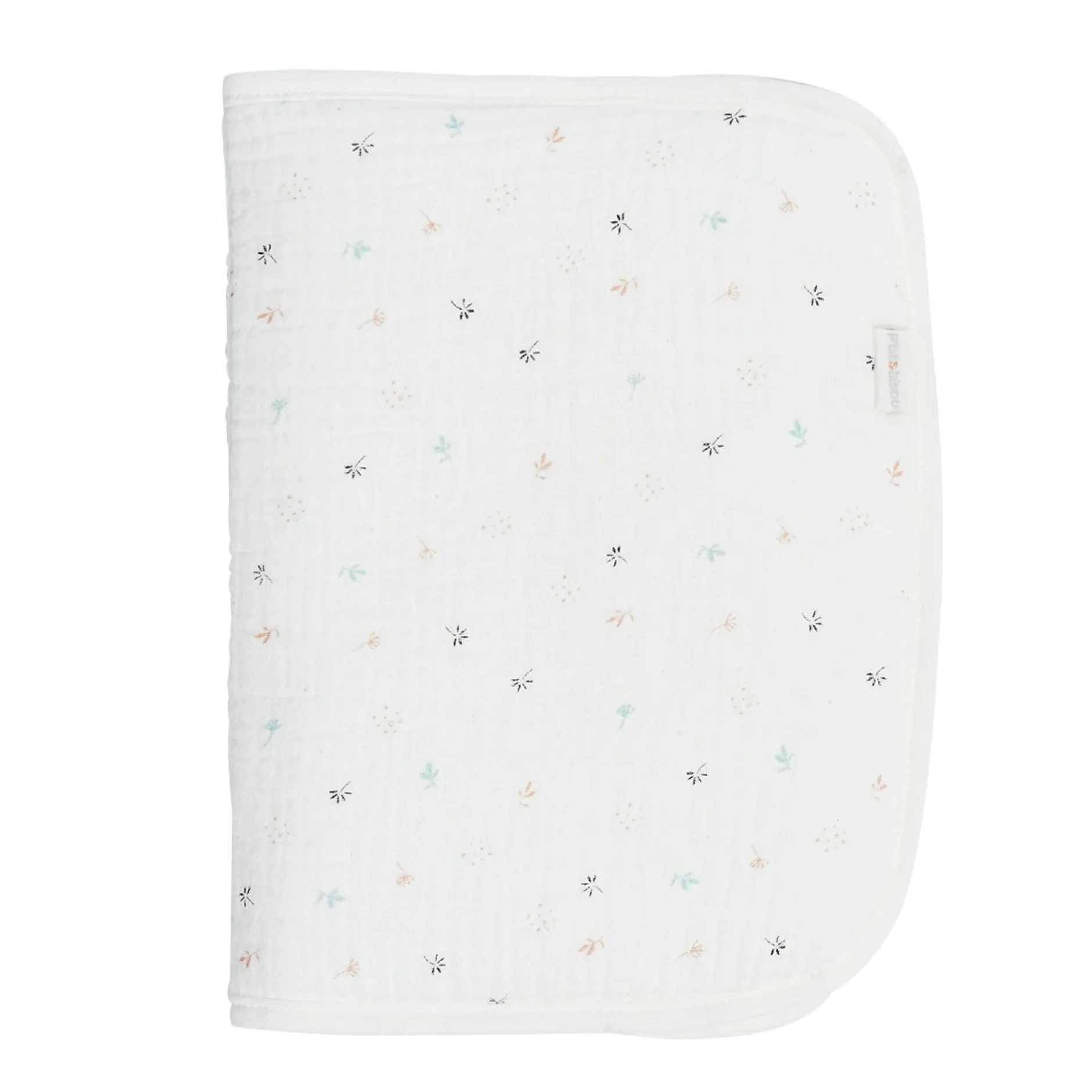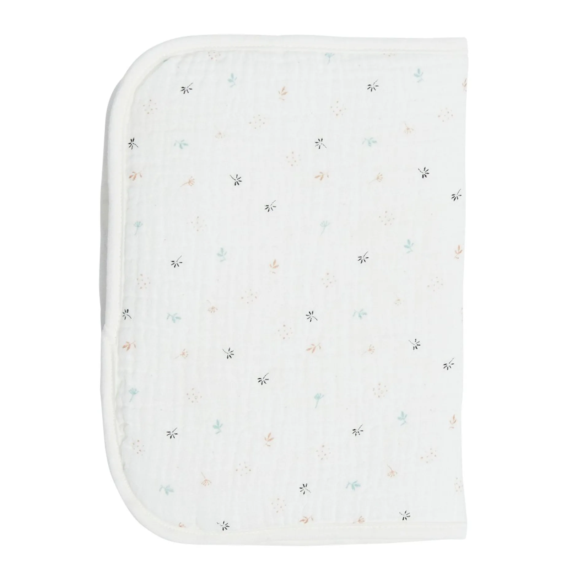 Protège carnet de santé P’tit Bisou en mousseline de gaze imprimé petits feuillages.