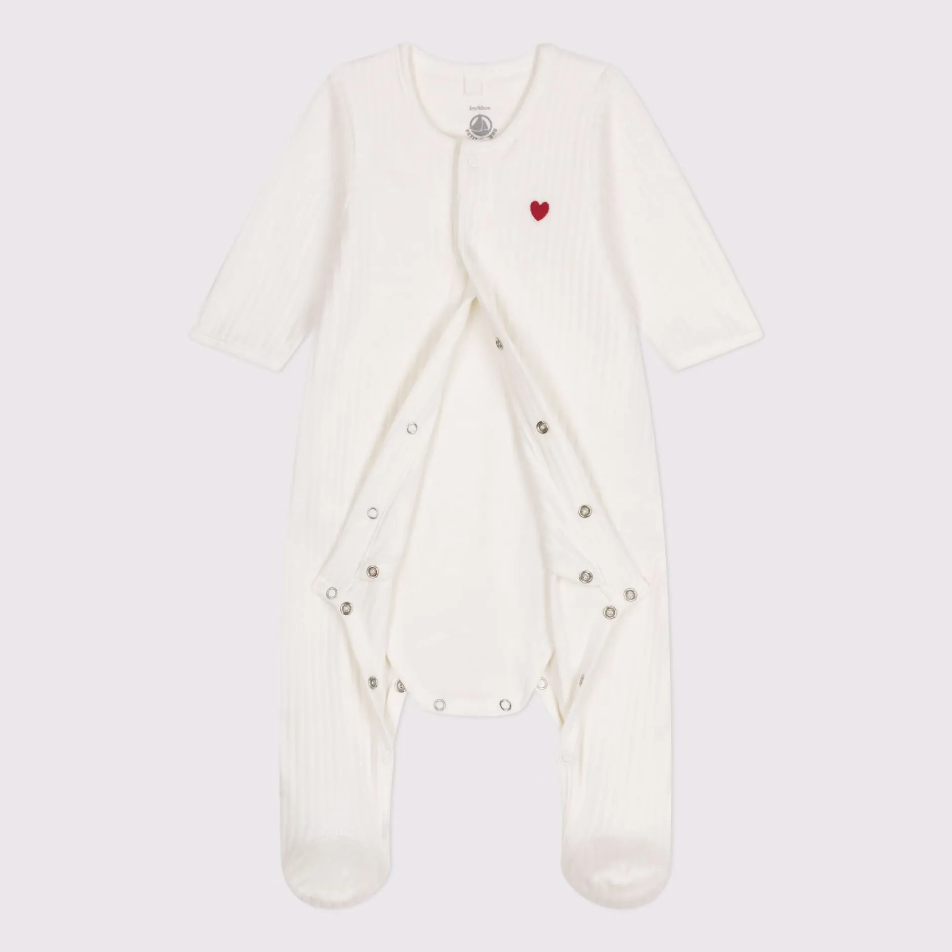Bodyjama en velours, matière chaude, douce et confortable ! Un super pyjama 2 en 1 : un dors-bien à ouverture pressionnée sur le devant + un body intégré. Pratique et confort, il facilitera le change et vous simplifiera la vie. Grâce à son unique ouverture pressionnée sur le devant, le bodyjama est facile à enfiler. Broderie cœur en poitrine