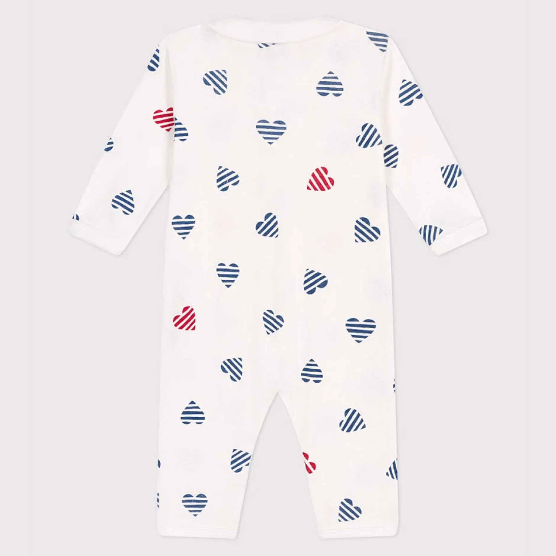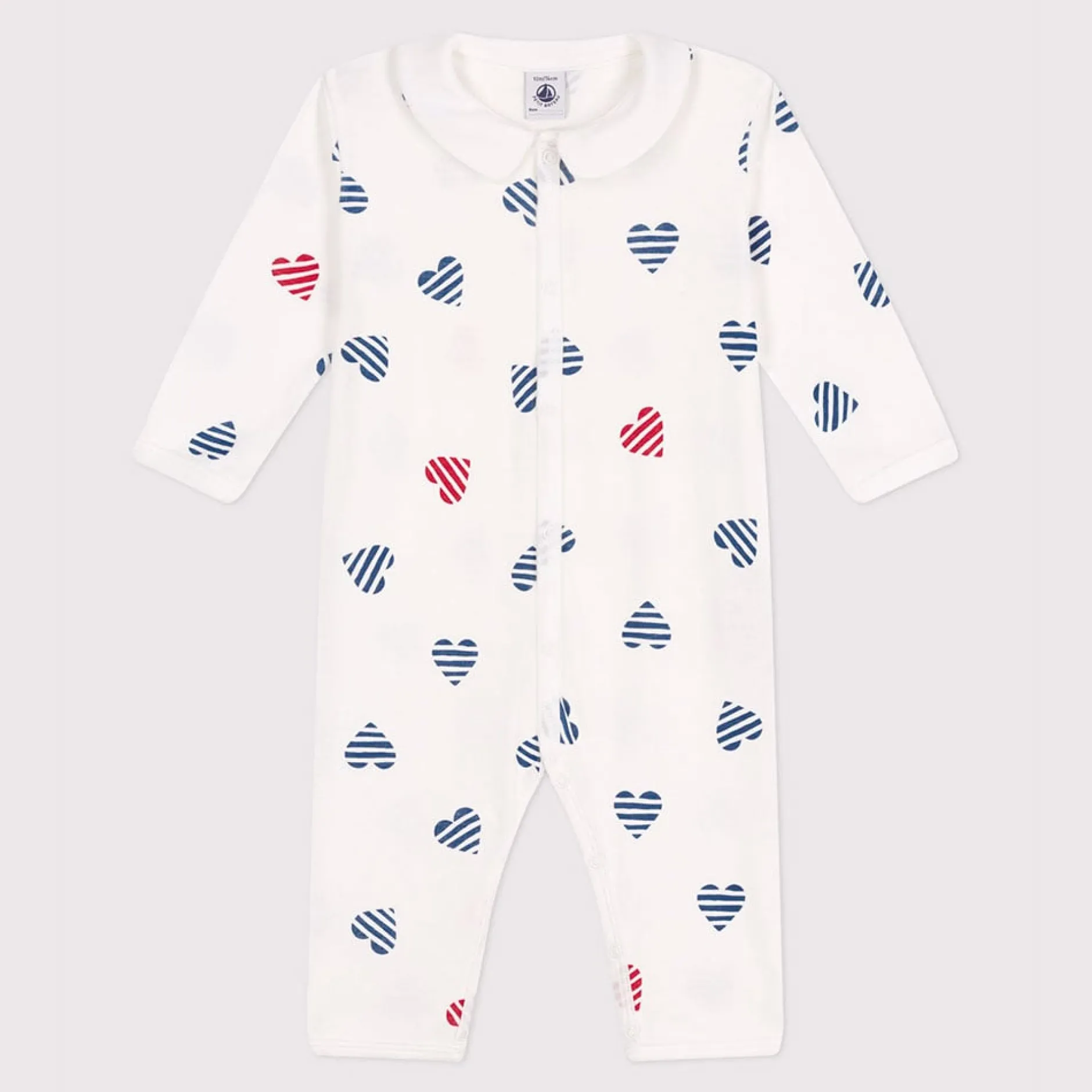Pyjamas|Pyjamas*Petit Bateau Pyjama bébé en coton sans pieds avec col cœur rayé de Blanc Marshmallow