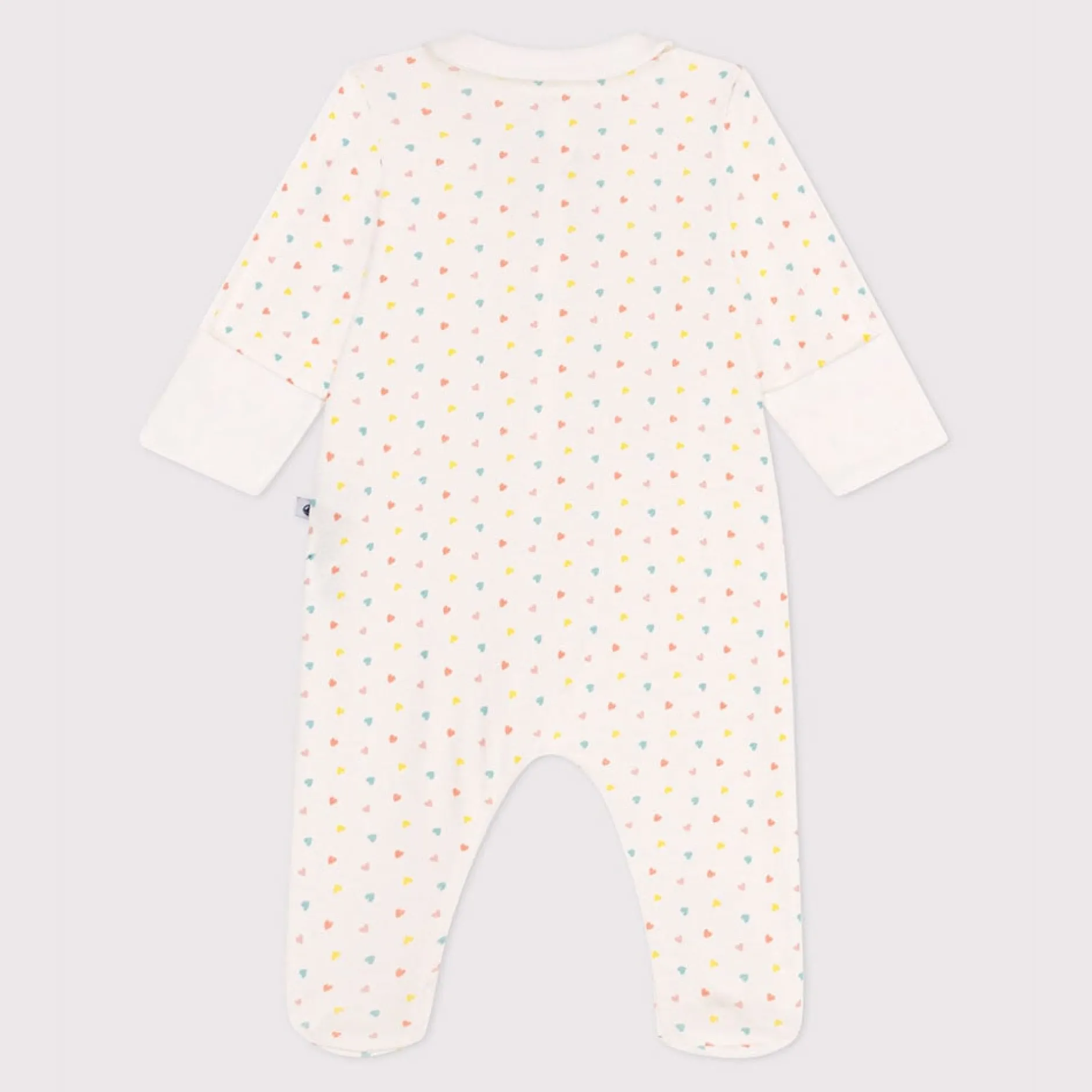 Dors-bien fille en côte 1X1, une matière extensible et confortable. Ce pyjama raffiné, avec un joli col et des moufles intégrées, est idéal pour les premiers jours du bébé.