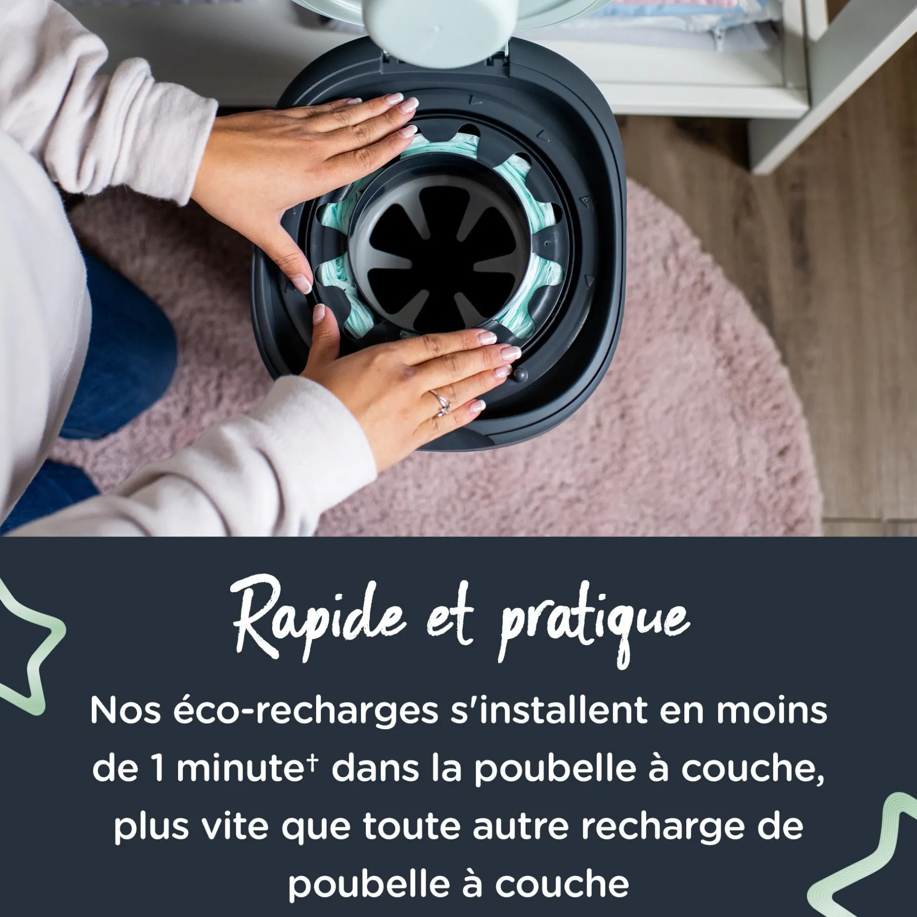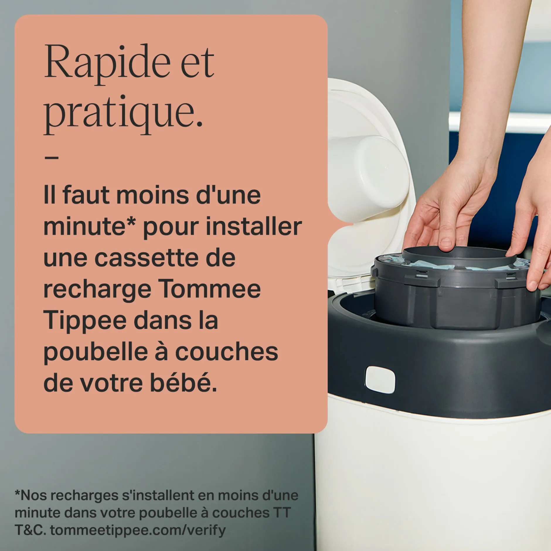 - Le moyen le plus rapide de recharger nos poubelles à couches*** : Il faut moins d’une minute pour installer une cassette de recharge Tommee Tippee dans la poubelle à couches de votre bébé, ce qui signifie moins de temps passé à gérer les saletés et plus de temps pour vous et votre bébé