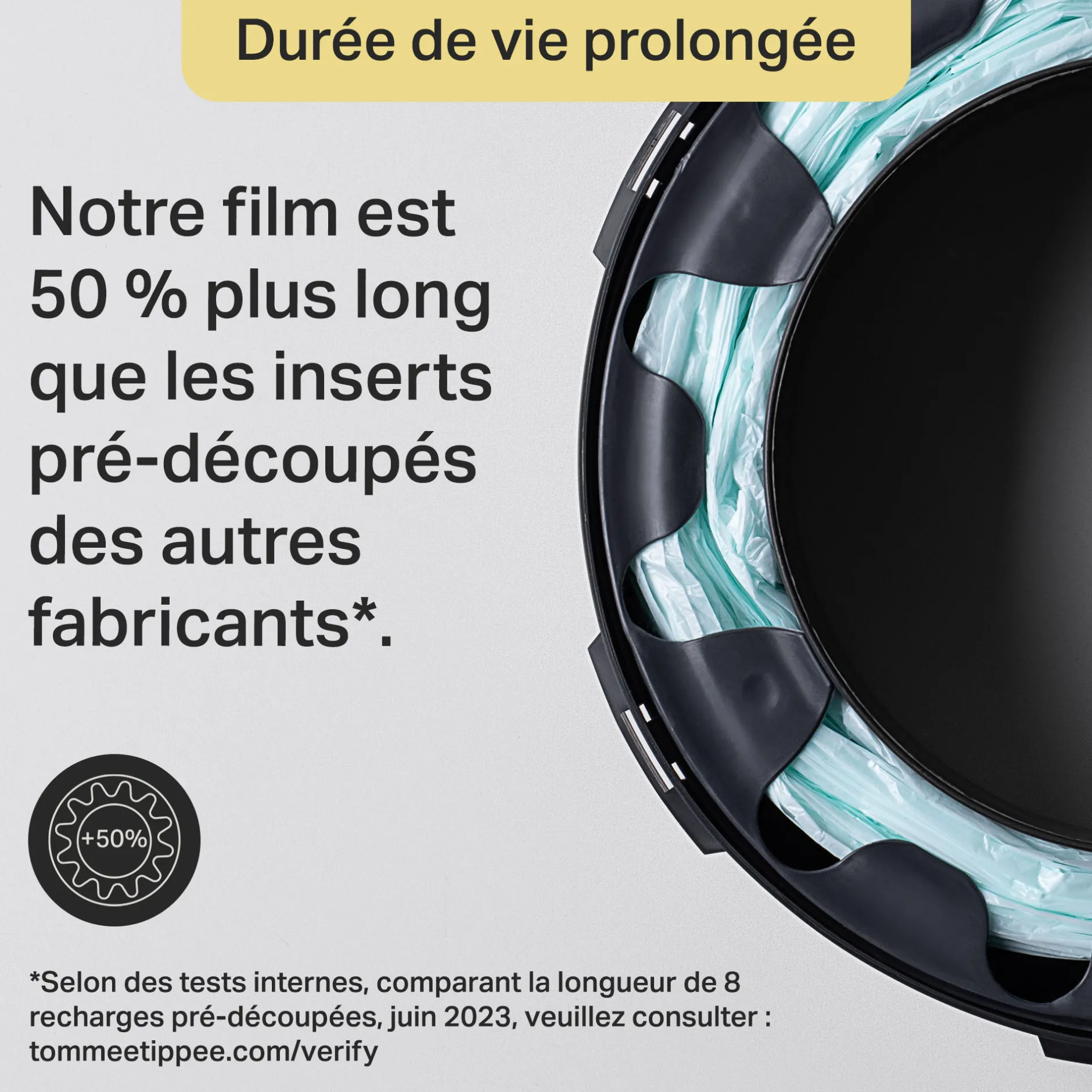 ‡Selon des tests internes, comparant la longueur de 8 recharges pré-découpées, juin 2023, veuillez consulter : tommeetippee.com/verify