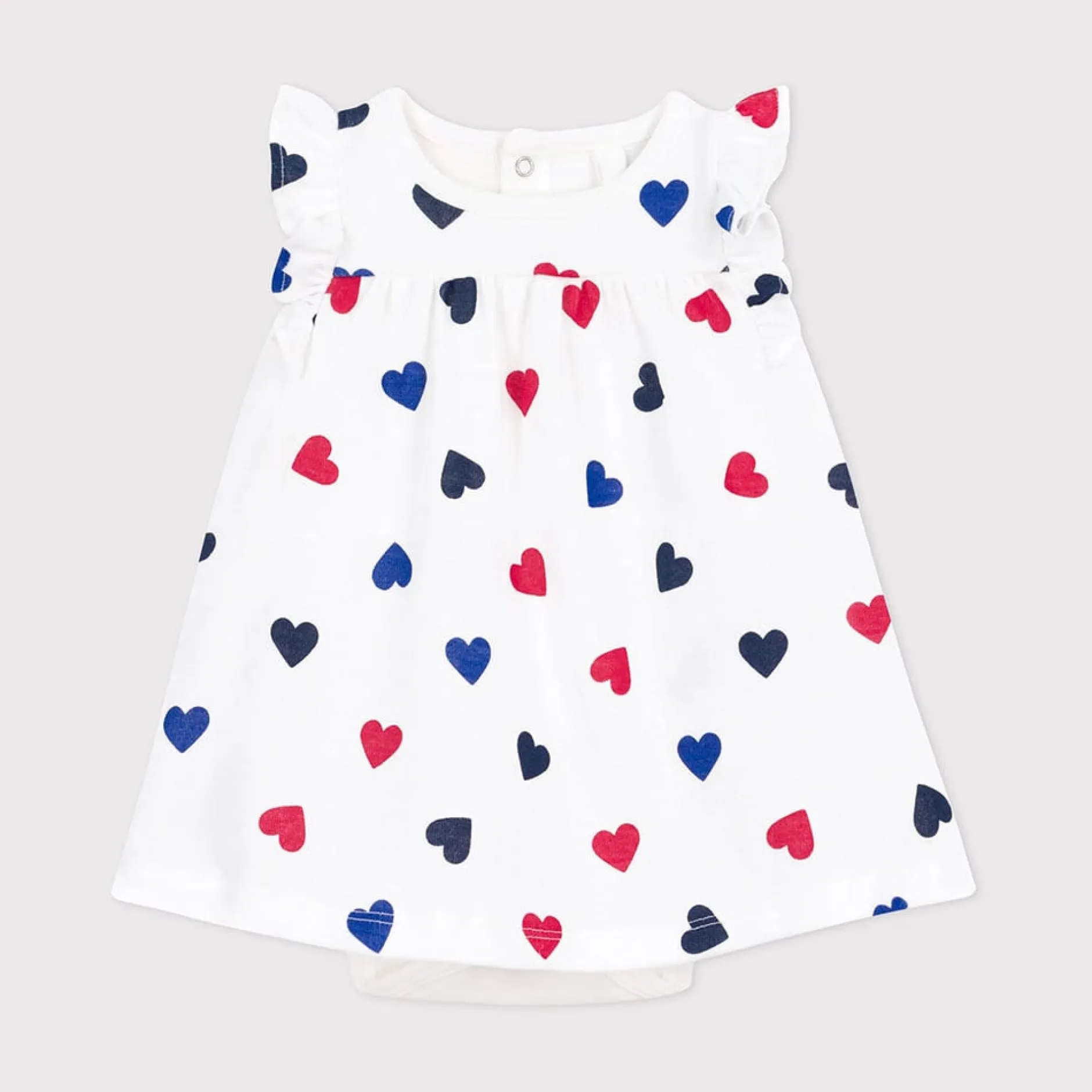 Robe iconique fille en côte 1X1, une matière extensible et confortable avec son cœur tricolore. Adorable avec ses vol…