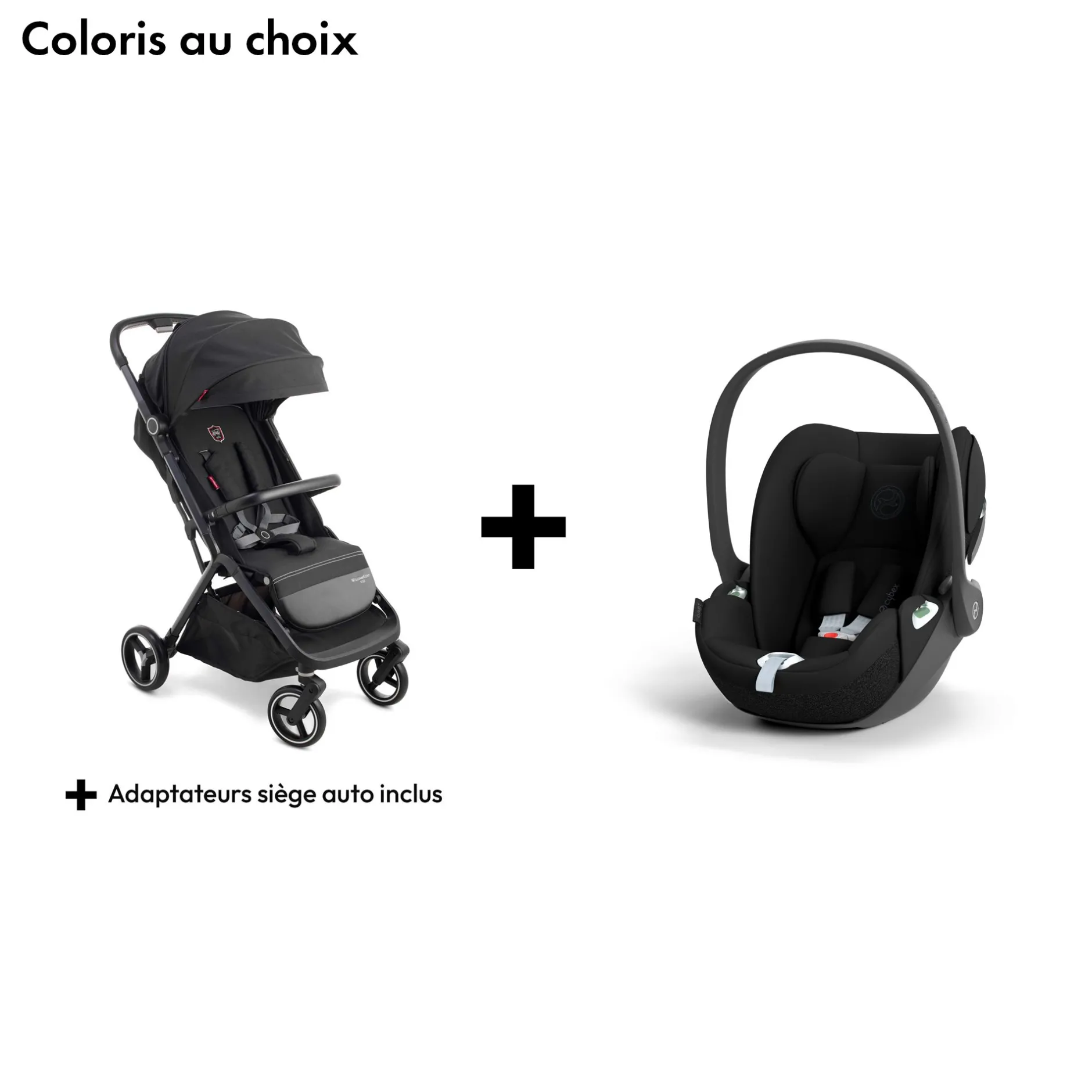 Ce pack contient un siège auto coque Cloud T de CYBEX (coloris au choix) et une poussette Sirius (coloris au choix) de William Kent 1733.