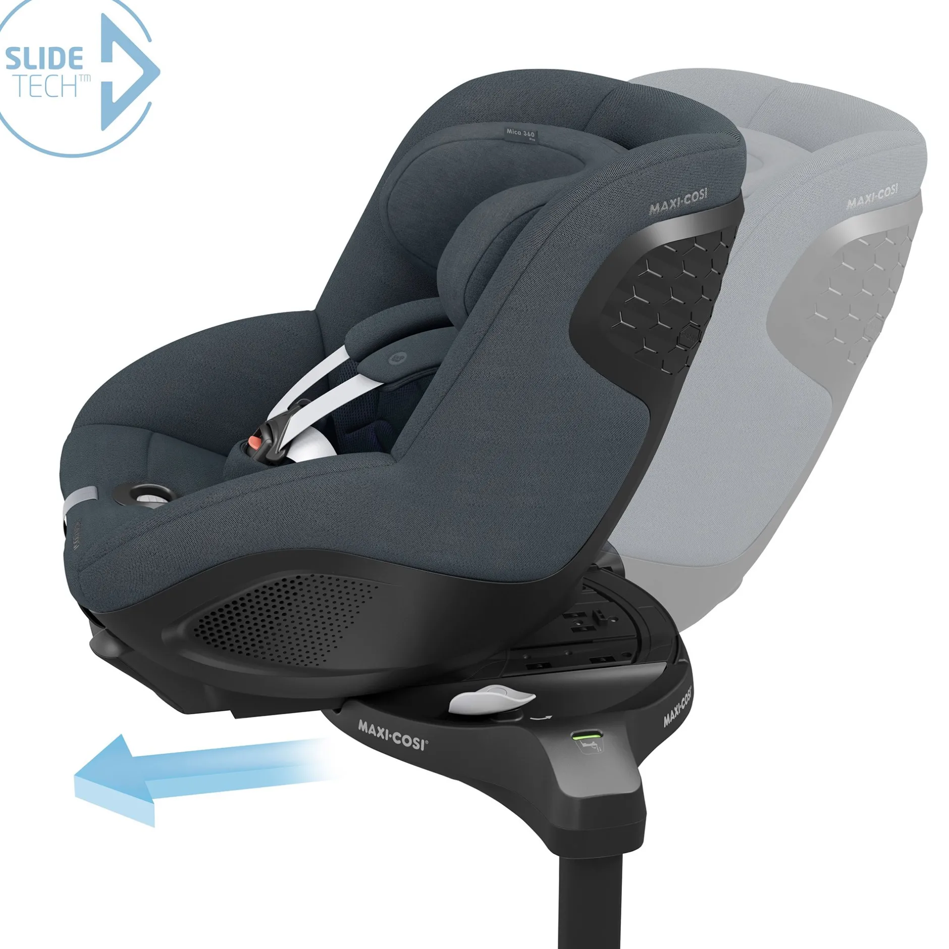 Coulissez, pivotez et profitez ! Un confort optimal pour les bébés, les tout-petits et leurs parents, avec la technologie révolutionnaire SlideTech™ de Maxi-Cosi, la rotation FlexiSpin, les 5 positions d’inclinaison très confortables et le harnais facile à installer.