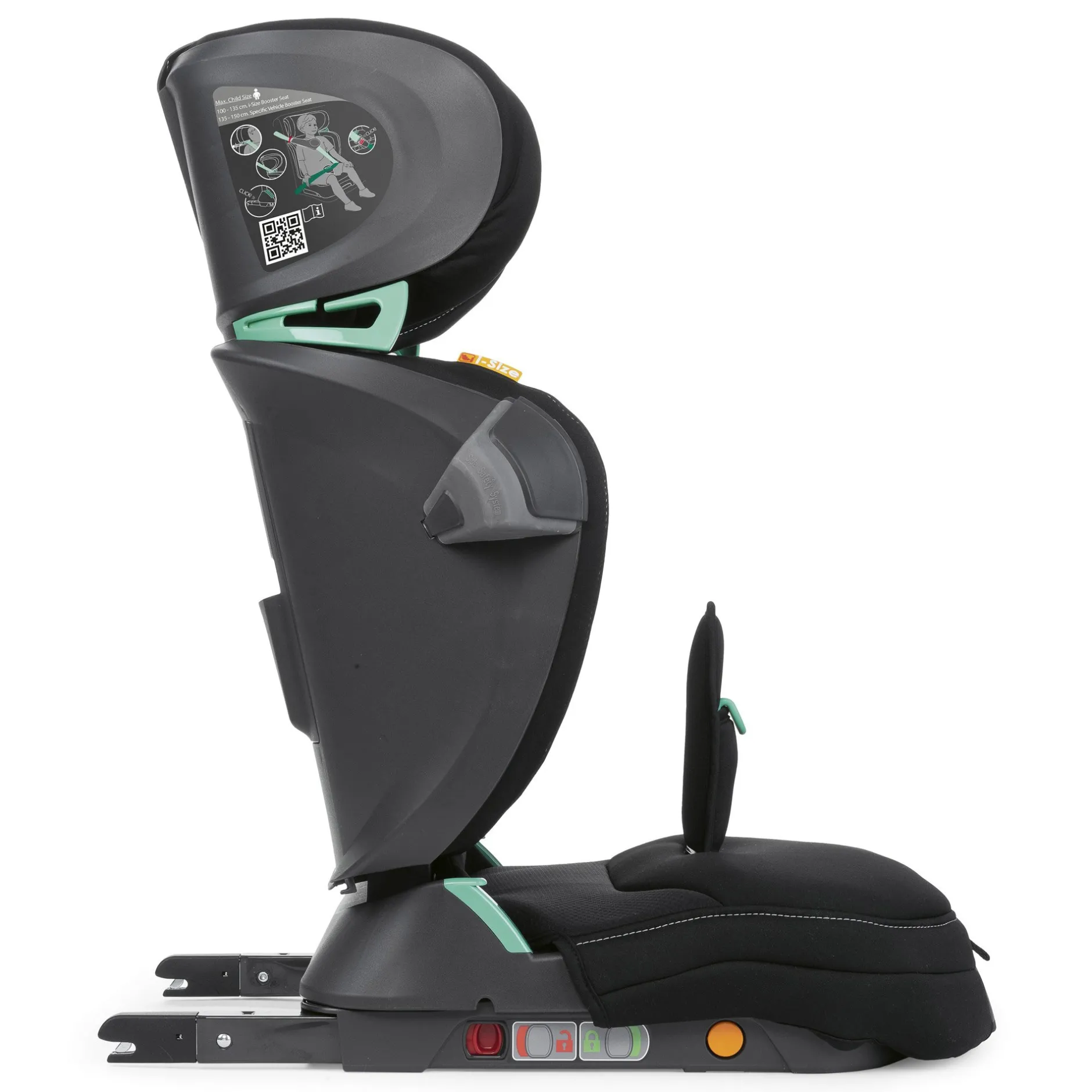 Côté sécurité, il se fixe à l’aide du système Isofix (toute voiture est normalement équipée de trous pour les crochets Isofix) ou de la ceinture de sécurité. Le siège satisfait à la stricte norme i-Size.