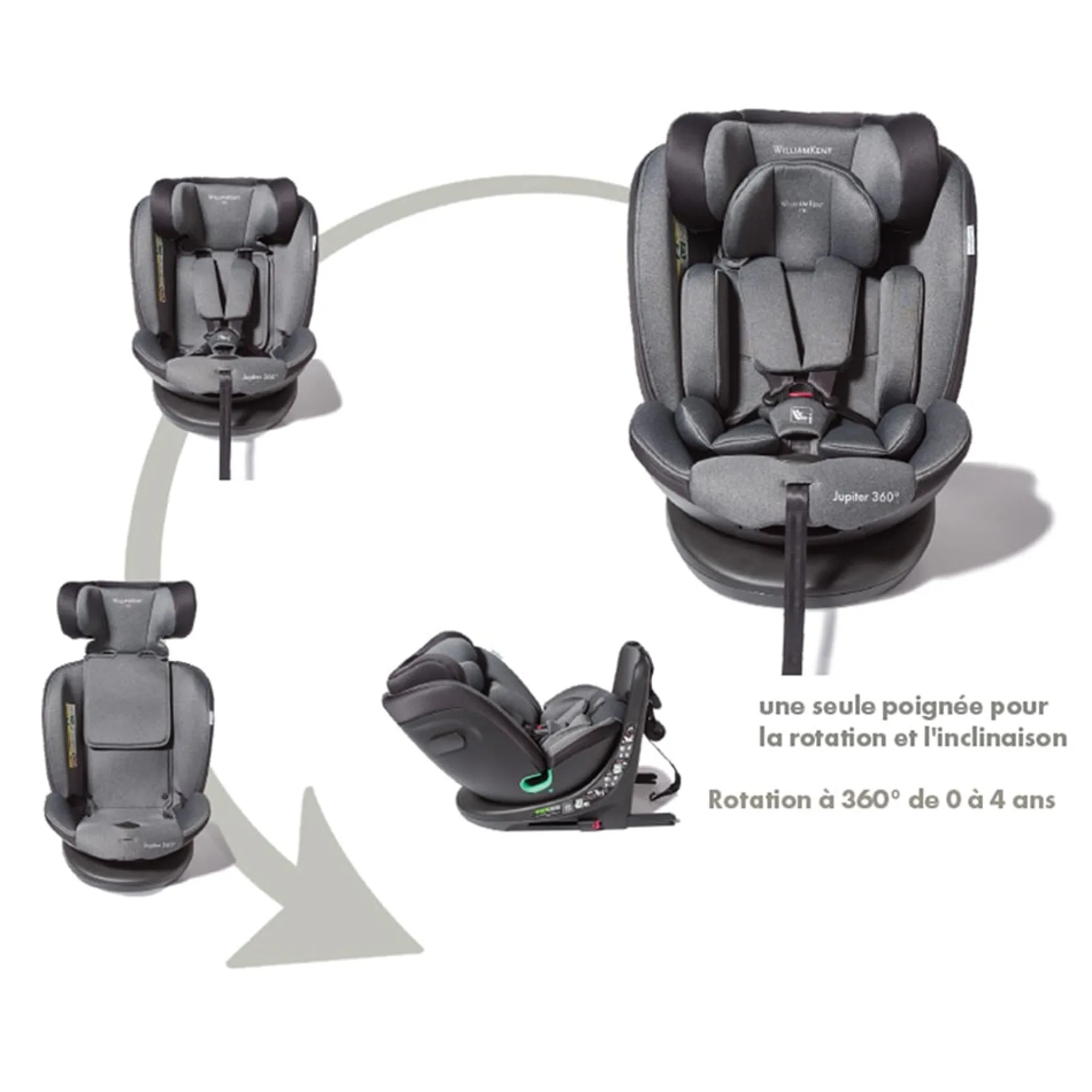 Avec ses différents inserts le siège Jupiter évoluera et grandira avec votre enfant jusqu’à ses 150cm (soit 10-12 ans environ). Sa fonction rotative facilite l’installation de bébé dans le véhicule.