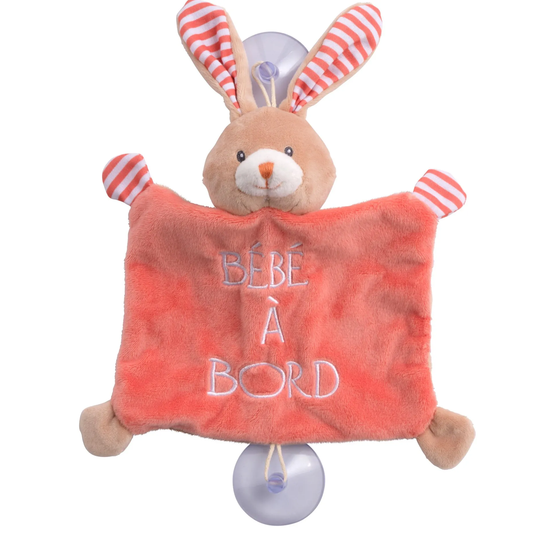 Bébé à bord , »P’tit bisou » de la gamme « IRIS & MALO » à l’effigie du petit lapin . Se fixe à l’aide de ventouses pour prévenir les conducteurs de la présence de votre tout petit dans la voiture.