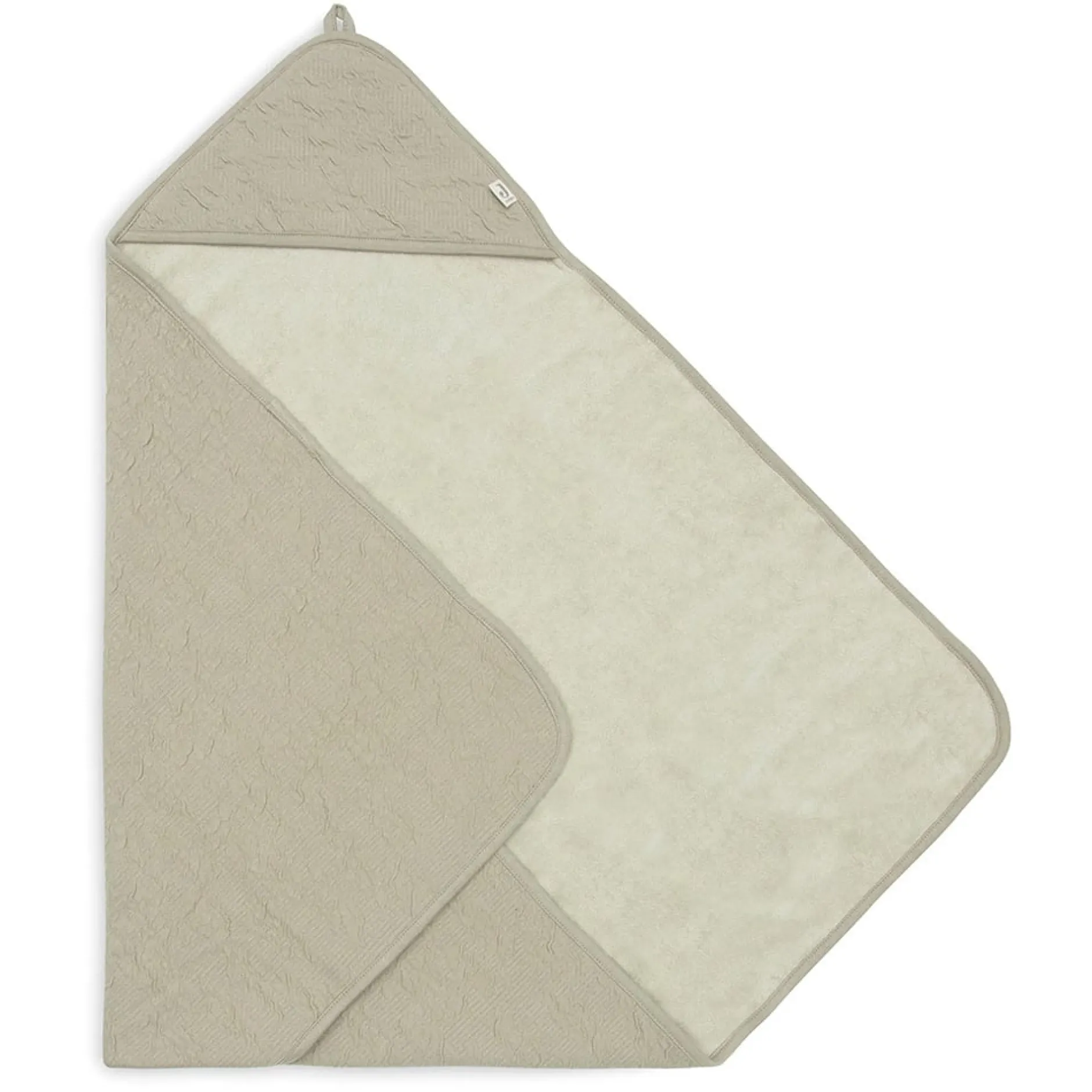 Le haut de la cape de bain est muni d’un crochet pratique qui vous permet de la suspendre facilement après utilisation. La serviette de bain Soft Waves est disponible en vert olive et nougat et est fabriquée en coton certifié OEKO-TEX.